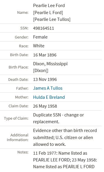 Pearlie Lee Tullos - G. Ray Braidy - Ford