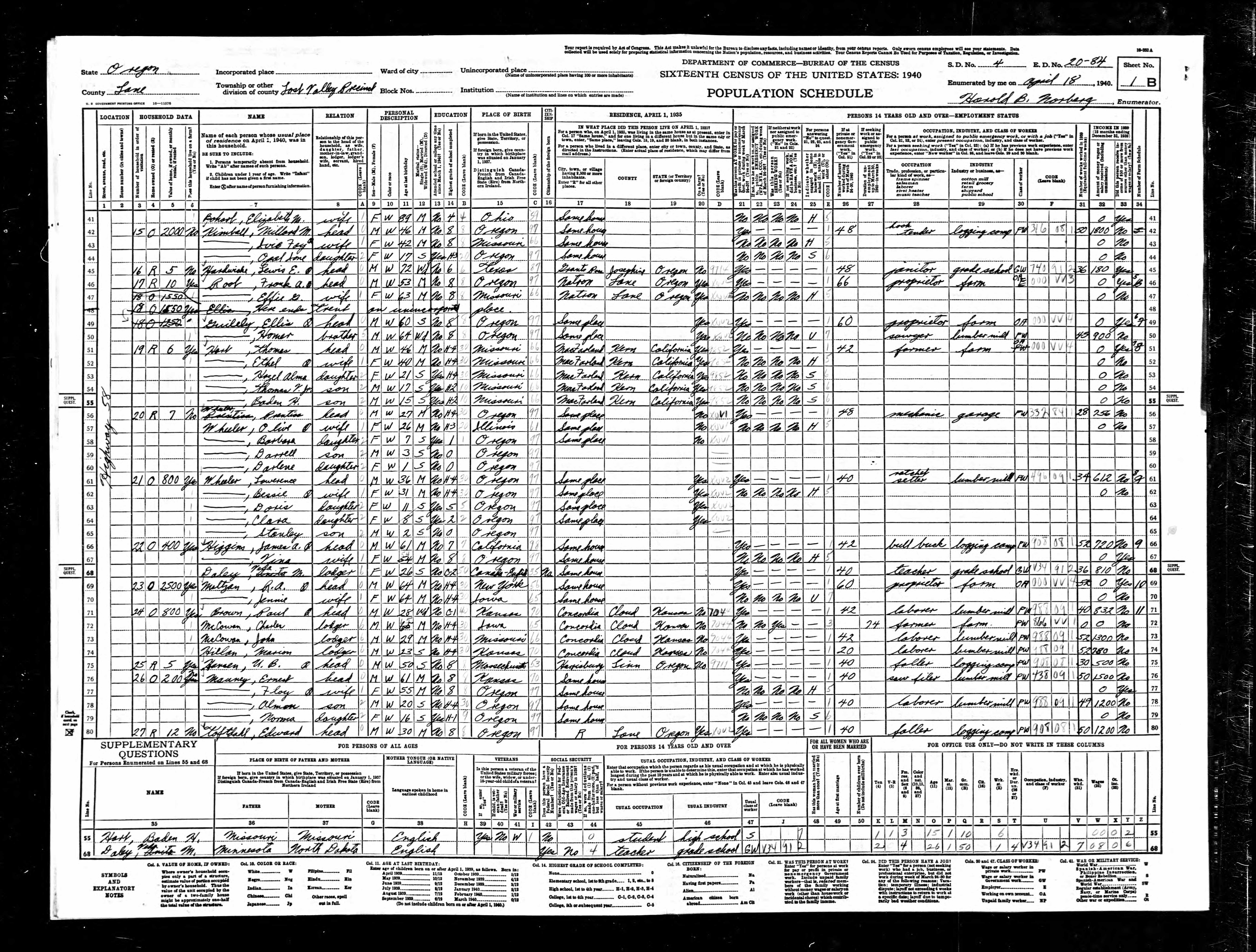 Residences1886 - Springfield, Lane, Oregon | 1900 - Mohawk, Lane, Oregon 1910 - Mohawk, Lane, Oregon 1920 - Mohawk, Lane, Oregon | 1930 - Mohawk, Lane, Oregon | 1940 - Lost Valley, Lane, Oregon 1950 - Lost Valley, Lane, Oregon 1951 - Lane, Lane, Oregon |