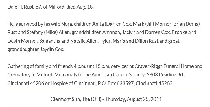 Residences1944 - West Virginia | 2011 - Milford, Clemont, Ohio |