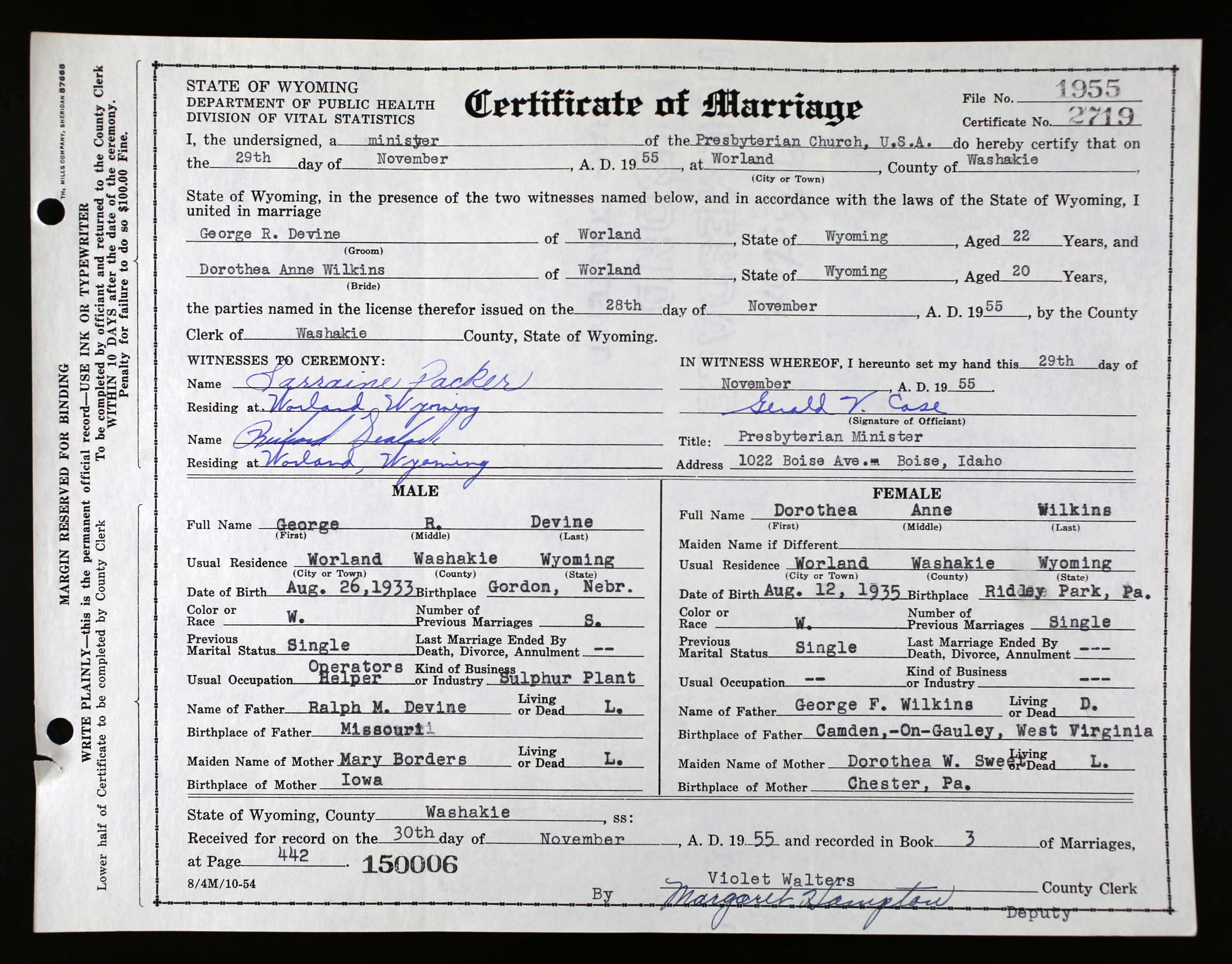 | 29 Nov 1955 - Worland, Washakie, Wyoming | |