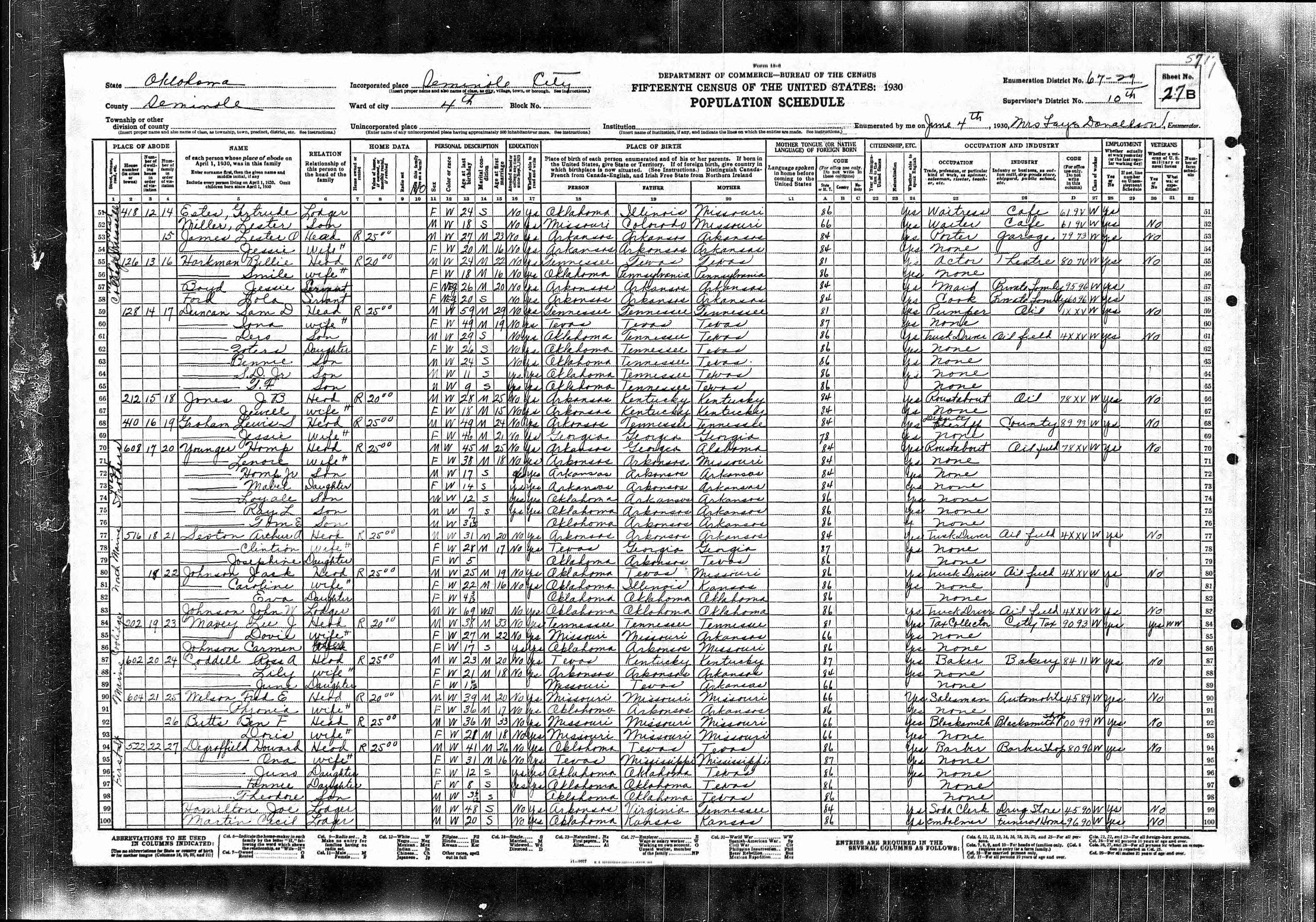 Residences1889 - Nelson, Choctaw, Oklahoma | 1910 - Jeter, Choctaw, Oklahoma 1920 - White, Mc Curtain, Oklahoma 1930 - Seminole, Seminole, Oklahoma 1940 - Seminole, Seminole, Oklahoma 1968 - , Wichita, Sedgwick, Kansas, USA |