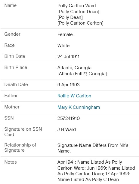 Residences1911 - Atlanta, Fulton, Georgia | 1920 - Atlanta, Fulton, Georgia 1930 - Atlanta, Fulton, Georgia 1940 - Atlanta, Fulton, Georgia 1950 - Atlanta, Fulton, Georgia 1993 - , Cartersville, Bartow, Georgia, USA |