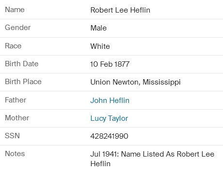Robert E. Lee Heflin - Maudie Bernice Reeves