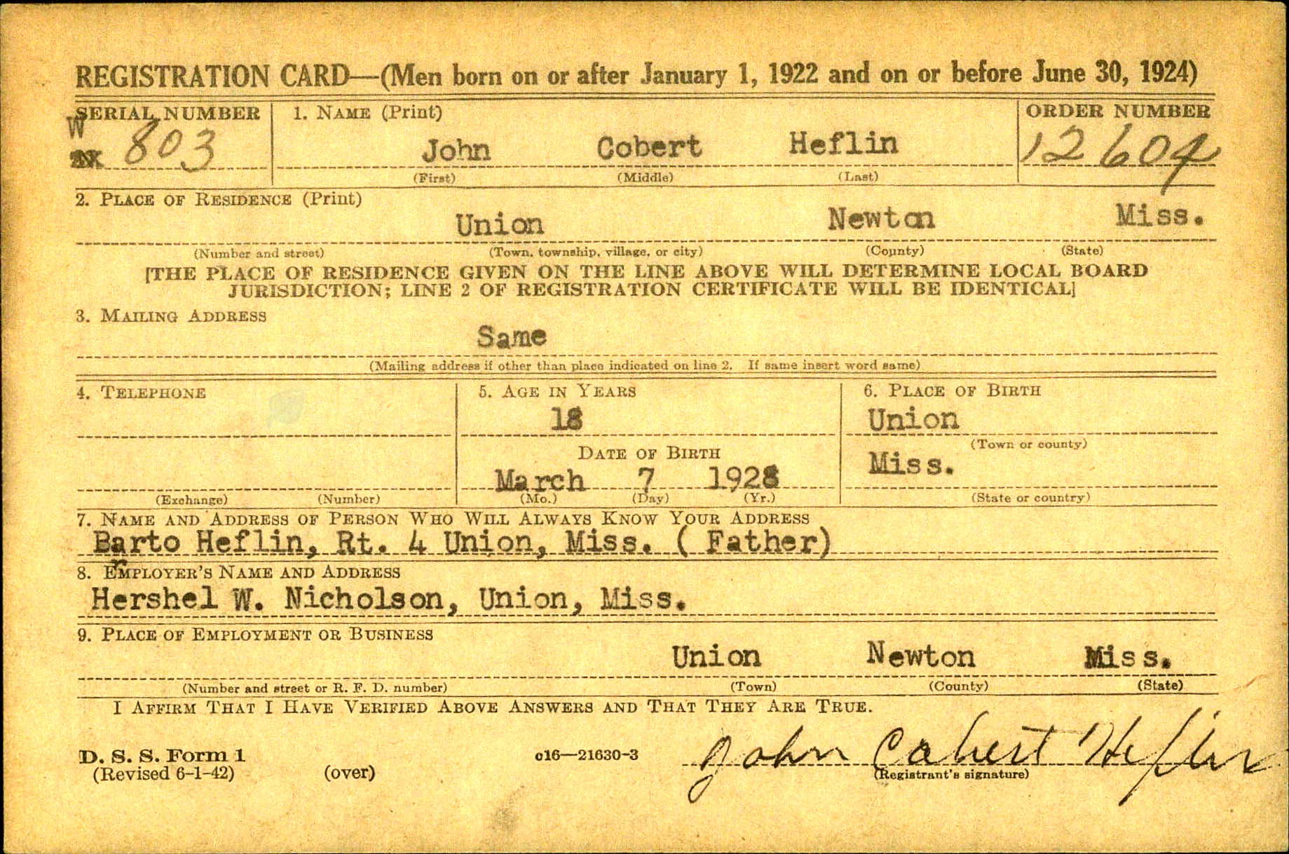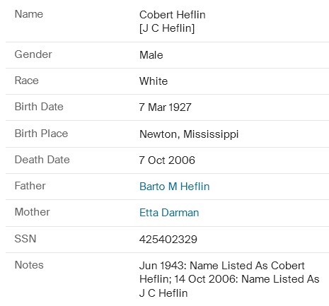Residences1928 - Union, Newton, Mississippi | 1930 - Newton, Mississippi 1940 - Newton, Mississippi 1950 - Union, Newton, Mississippi 2006 - , Gulfport, Harrison, Mississippi |