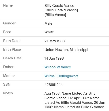 | Wilson Watts Vance & Wilma Inez Hollingsworth | |