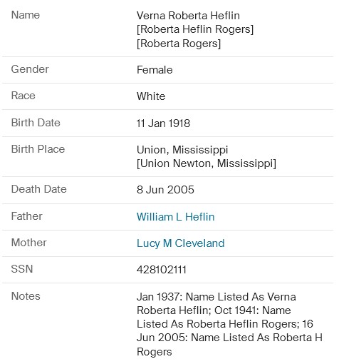 Residences1918 - Union, Newton, Mississippi | 1920 - Newton, Mississippi 1930 - Newton, Mississippi 1940 - Gulfport, Harrison, Mississippi 1950 - Gulfport, Harrison, Mississippi 2005 - , Gulfport, Harrison, Mississippi  |