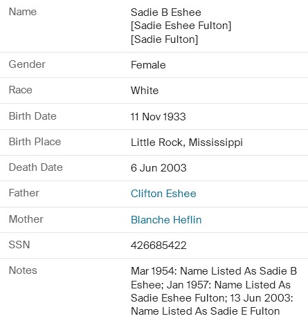 Residences1933 - Little Rock, Newton, Mississippi | 1940 - Newton, Mississippi 1950 - Newton, Mississippi 2003 - , Little Rock, Newton, Mississippi, USA |
