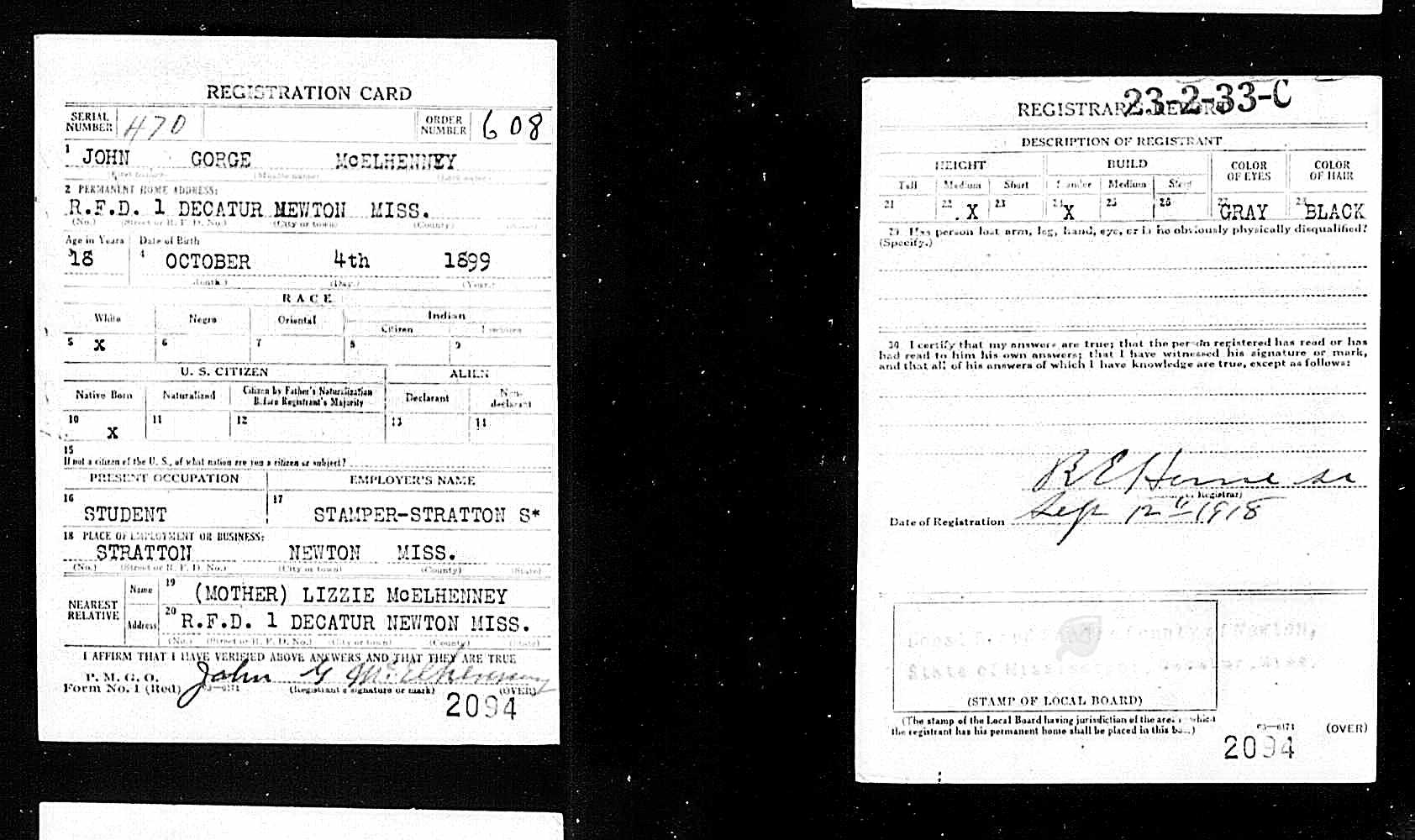 Draft CardWWI Draft Card