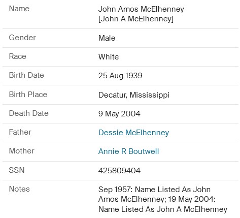 Parents   Dessie Lee McElhenney & Annie Ruth Boutwell