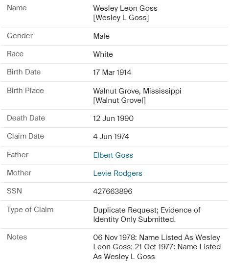 Children Calvin Wesley Goss  - 6 Nov 1955 -