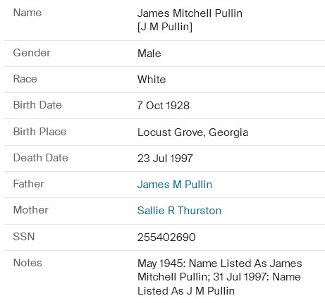 | James Mitchell Pullin & Sallie Ruth Thurston | |