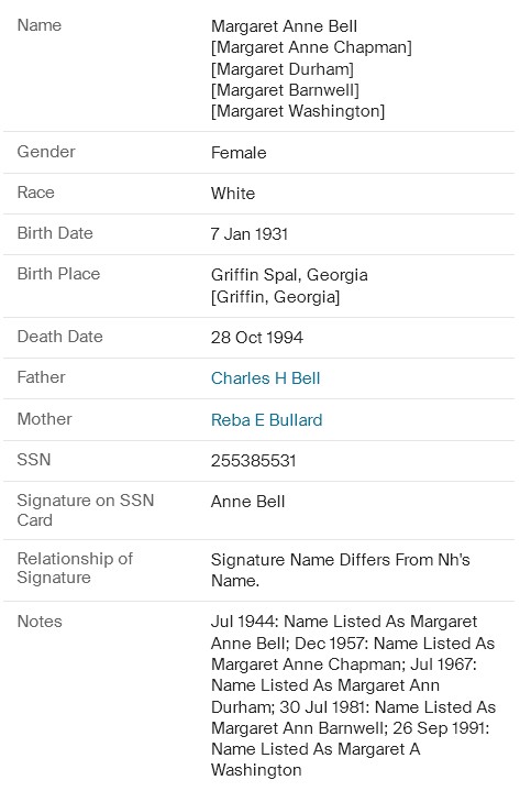 Margaret Ann Bell - William S. Chapman - Claude E. Durham - Barnwell - Washington
