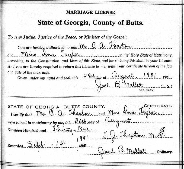 Residences1909 - Spalding County, Georgia | 1910 - Cabin, Spalding, Georgia 1920 - Buttrill, Butts, Georgia 1930 - Towaliga, Butts, Georgia 1940 - Buttrill, Butts, Georgia 1950 - Jackson, Butts, Georgia 1979 - , Jackson, Butts, Georgia, USA |