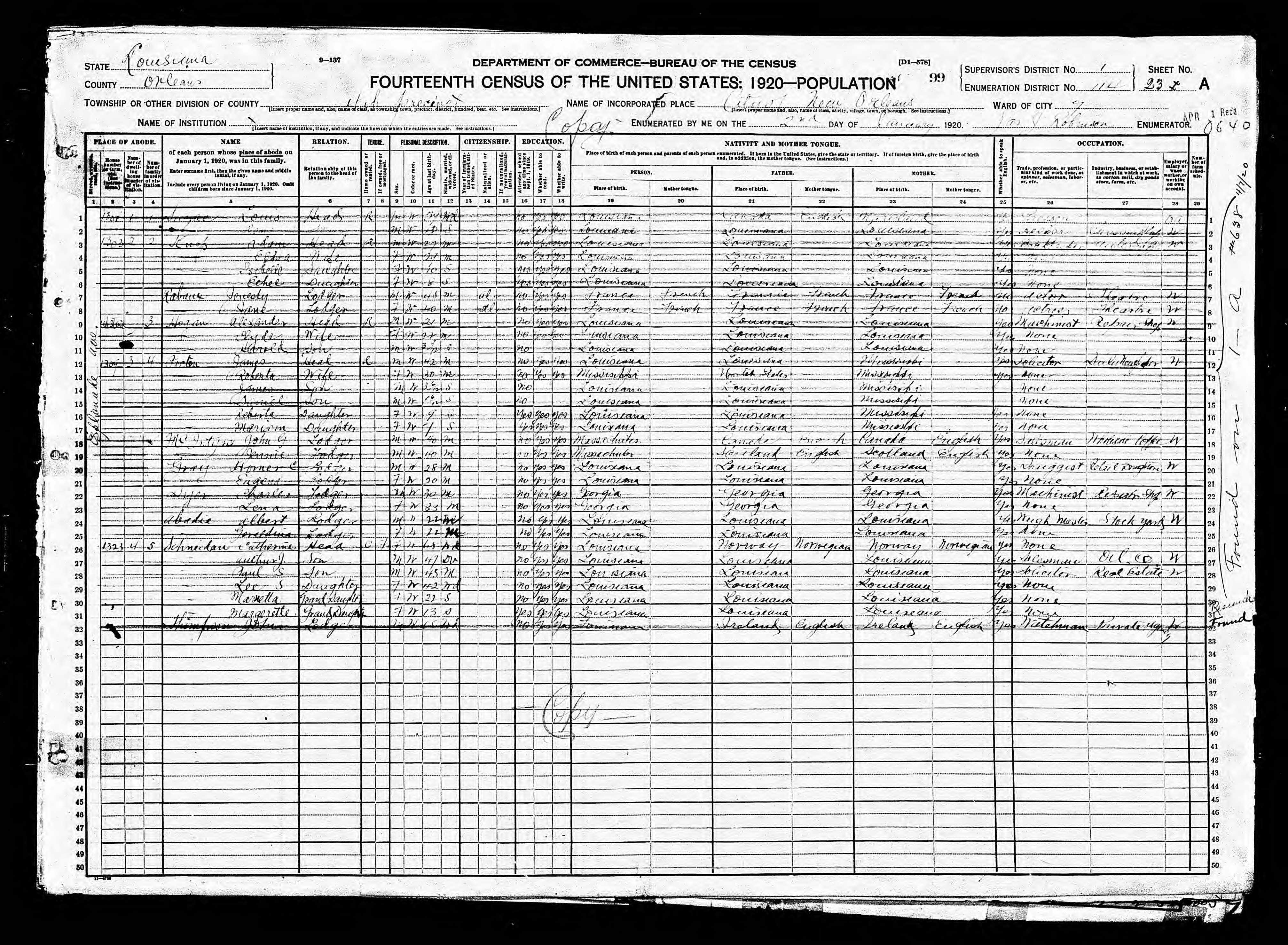 | 23 Dec 1917 - New Orleans, Orleans, Louisiana | |
