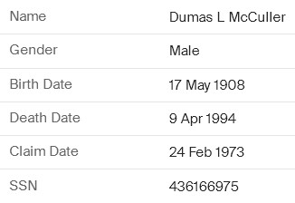 Residences1908 - Bernice, Union, Louisiana | 1910 - Union, Louisiana 1920 - Union, Louisiana 1940 - Union, Louisiana 1950 - Union, Louisiana 1994 - , Bernice, Union, Louisiana, USA |