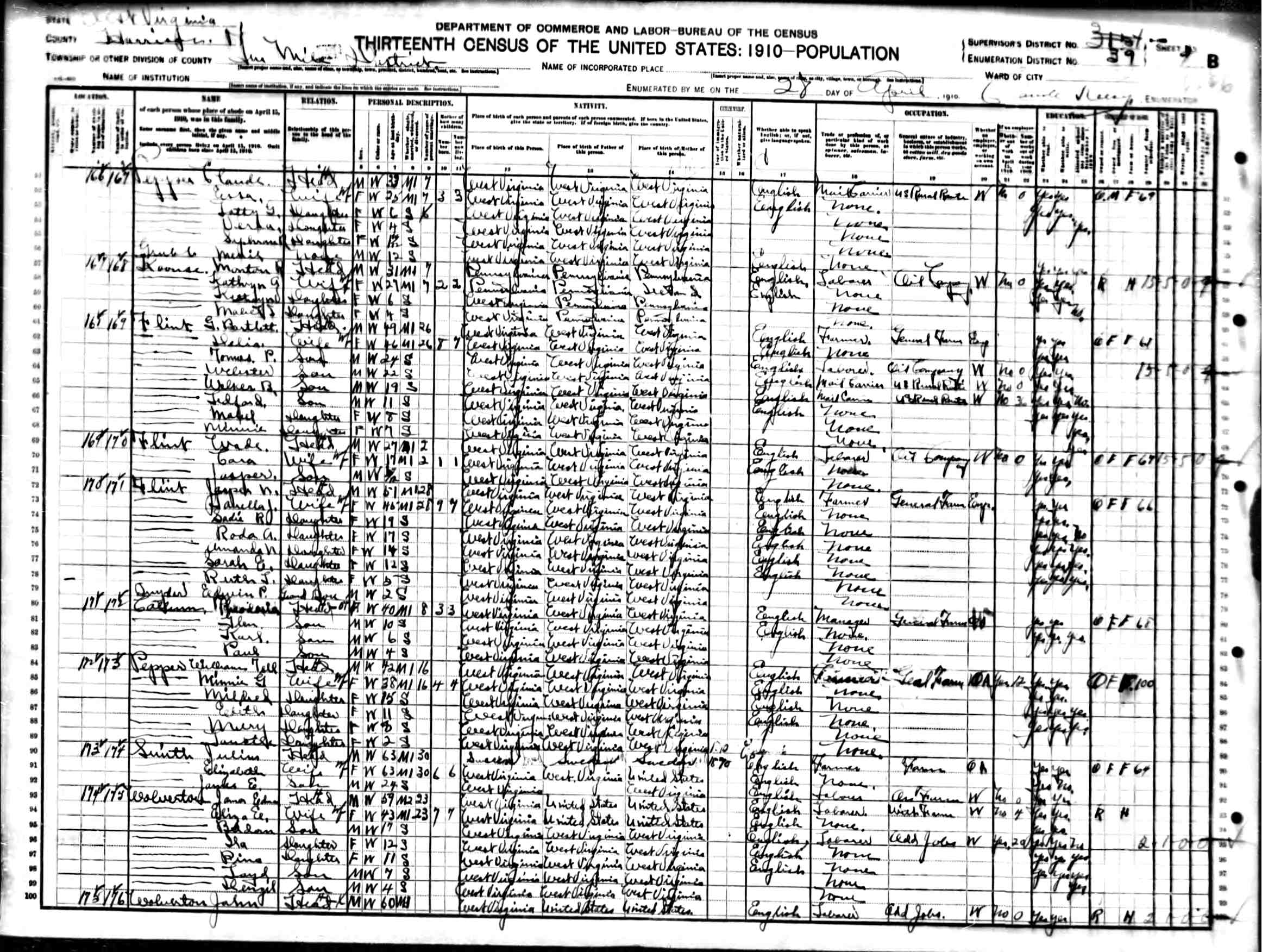 Residences1894 - Salem, West Virginia | 1900 - Ten Mile, Harrison, West Virginia 1910 - Ten Mile, Harrison, West Virginia 1920 - Salem, Harrison, West Virginia 1985 - Pasadena, Los Angeles, California |