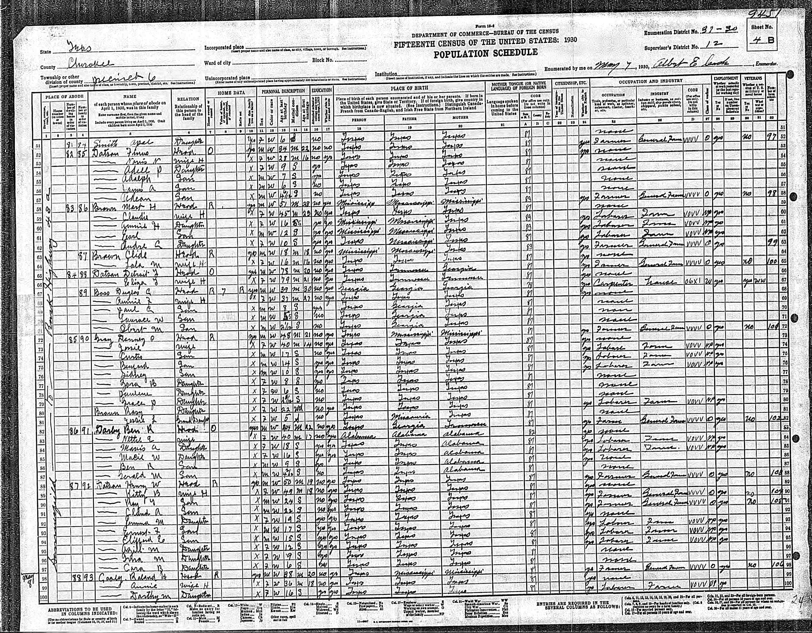 Residences1882 - Cherokee County, Texas | 1900 - Lone Star, Cherokee, Texas 1910 - Fruitvale, Van Zandt, Texas 1920 - Cherokee, Texas 1930 - Cherokee, Texas |