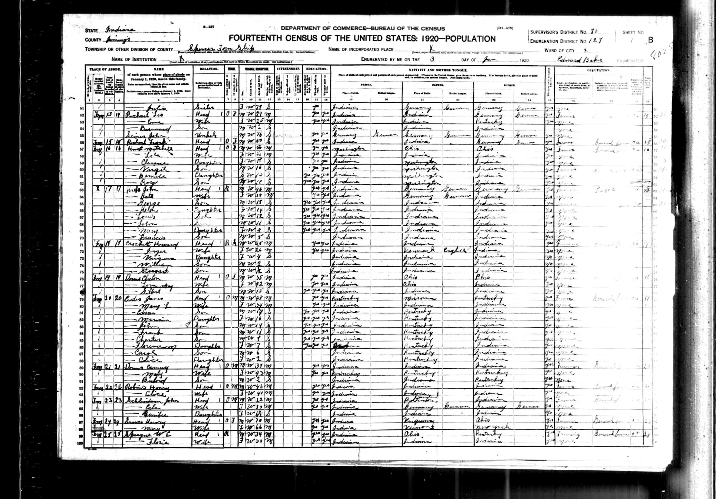 Residences1890 - Indiana | 1900 - Washington, Jackson, Indiana 1910 - Washington, Jackson, Indiana 1920 - Spencer, Jennings, Indiana 1930 - Shawswick, Lawrence, Indiana 1964 - Indiana |
