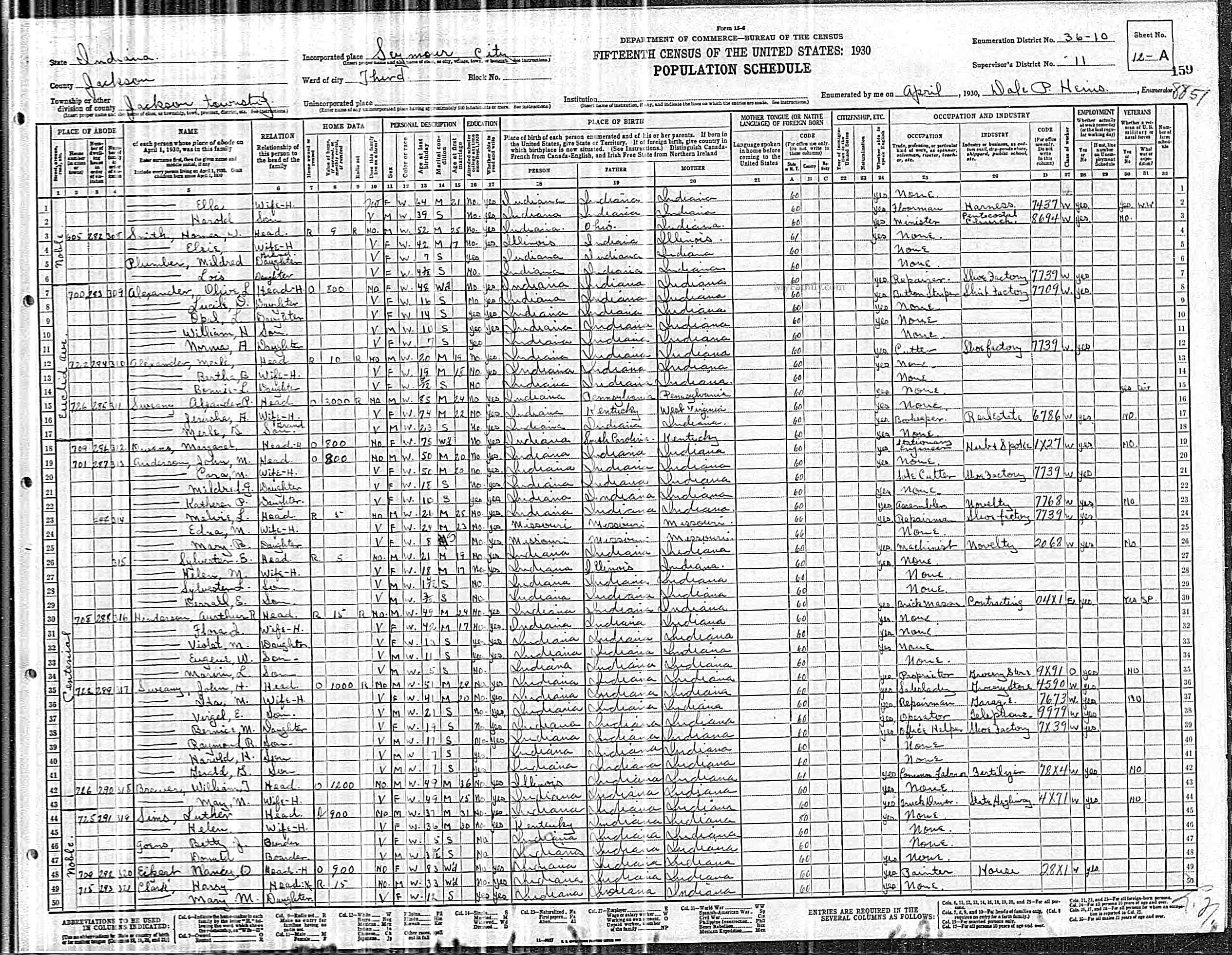 Residences1878 - Indiana | 1880 - Jackson, Jackson, Indiana 1900 - Washington, Jackson, Indiana 1930 - Seymour, Jackson, Indiana |