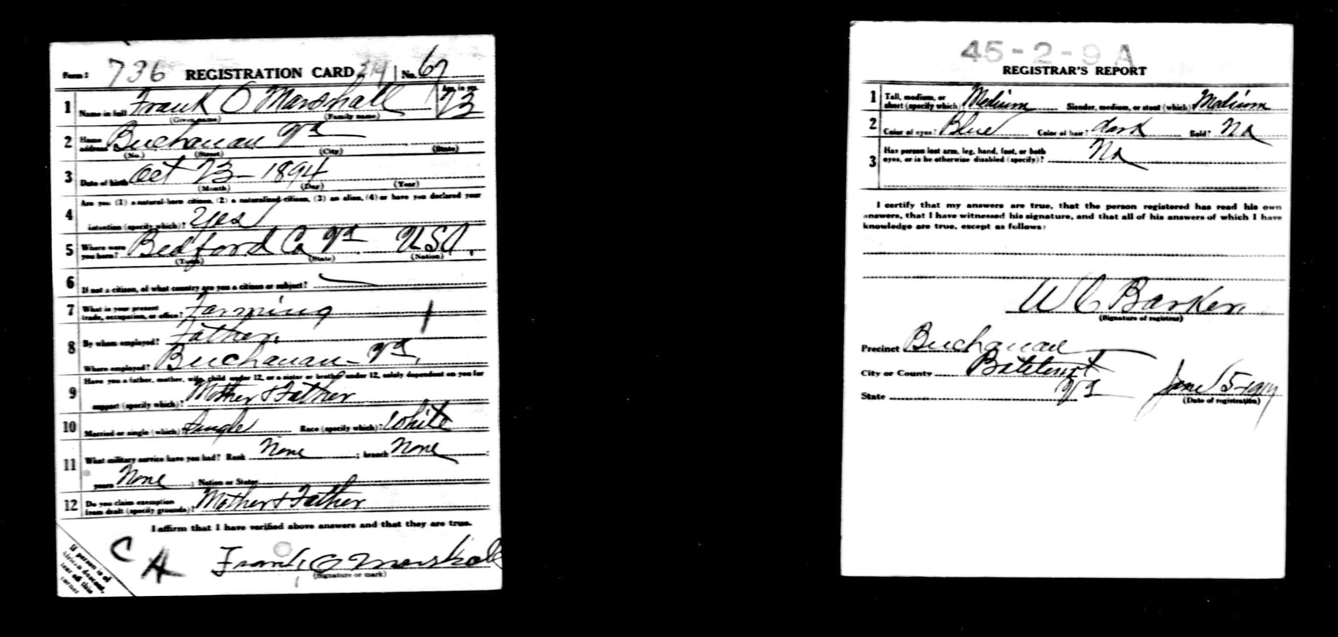 Residences1893 - Bedford, Virginia | 1900 - Buchanan, Botetourt, Virginia 1910 - Buchanan, Botetourt, Virginia 1920 - Buchanan, Botetourt, Virginia 1974 - Buchanan, Botetourt, Virginia |