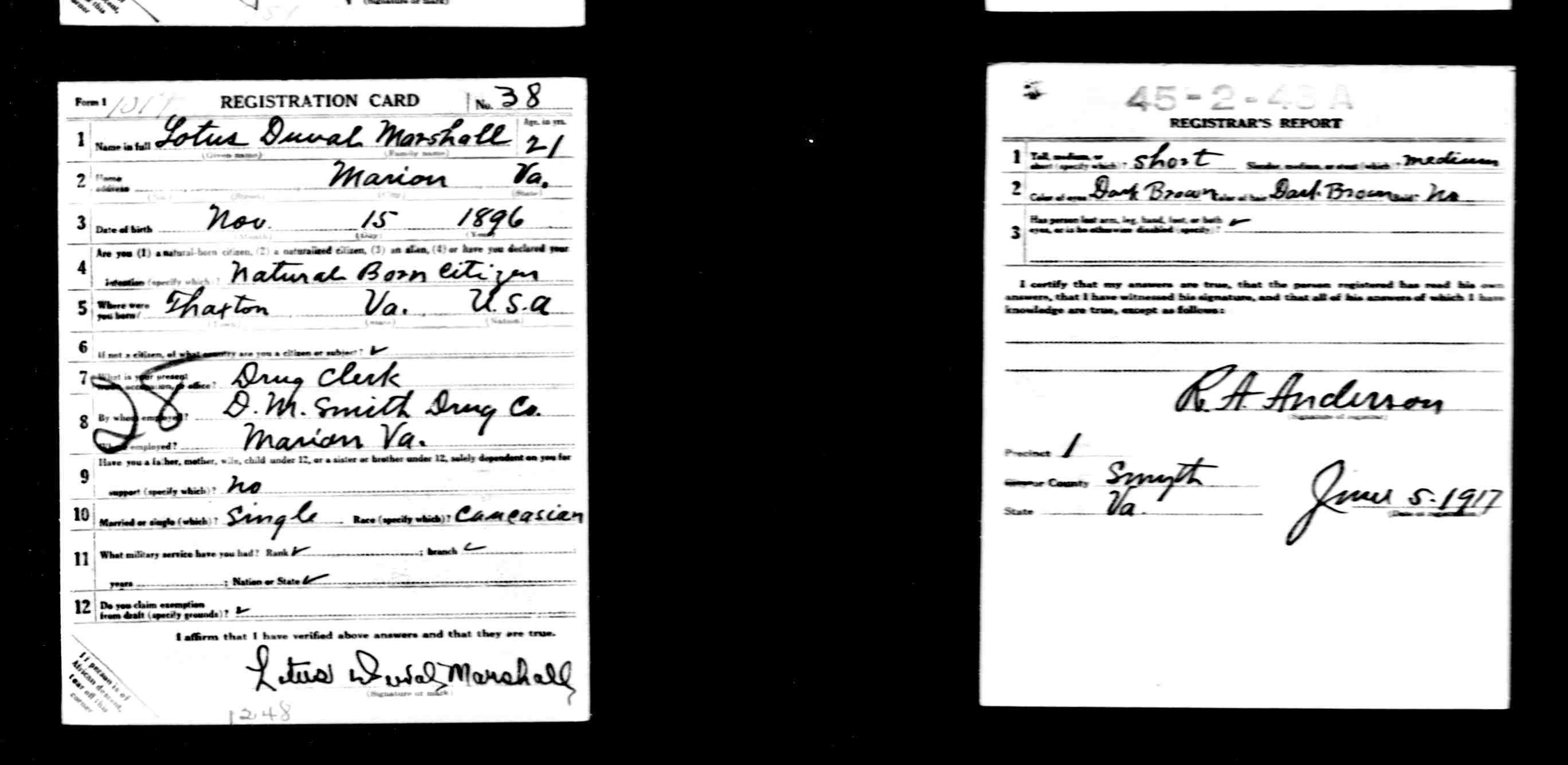 Residences1896 - Thaxton, Virginia | 1900 - Buchanan, Botetourt, Virginia 1910 - Buchanan, Botetourt, Virginia 1930 - Richmond, Richmond, Virginia |