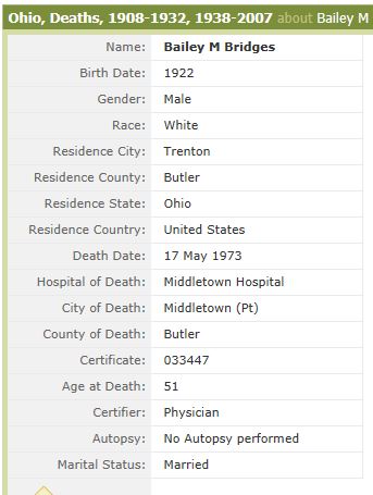 Residences1921 - Ferrum, Franklin, Virginia | 1930 - Kanawha, Fayette, West Virginia 1940 - Kanawha, Fayette, West Virginia 1973 - Middletown, Butler, Ohio |
