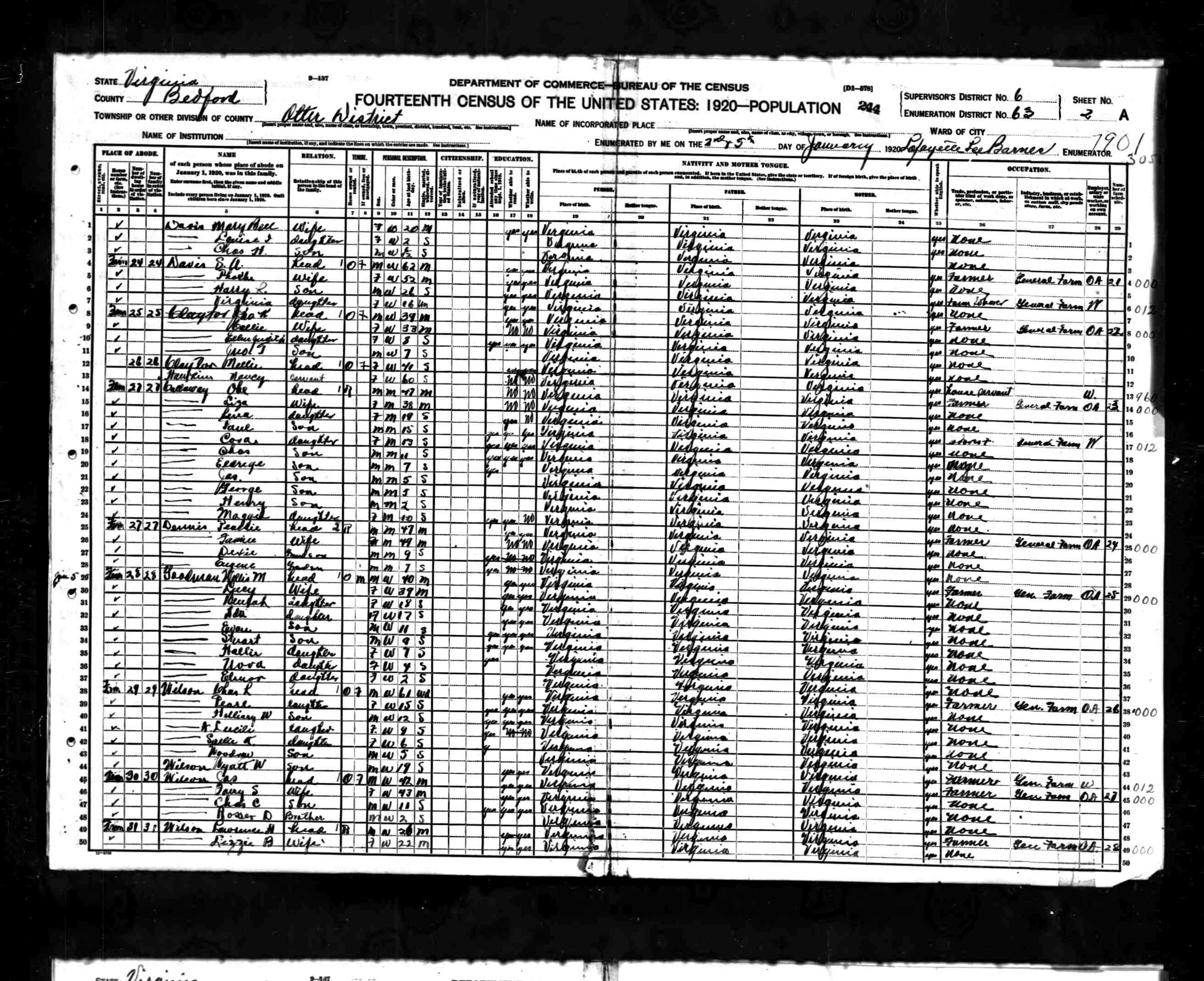 Residences1911 - Bedford, Virginia | 1920 - Otter, Bedford, Virginia 1930 - Otter, Bedford, Virginia 1985 - Lynchburg, Lynchburg City, Virginia |