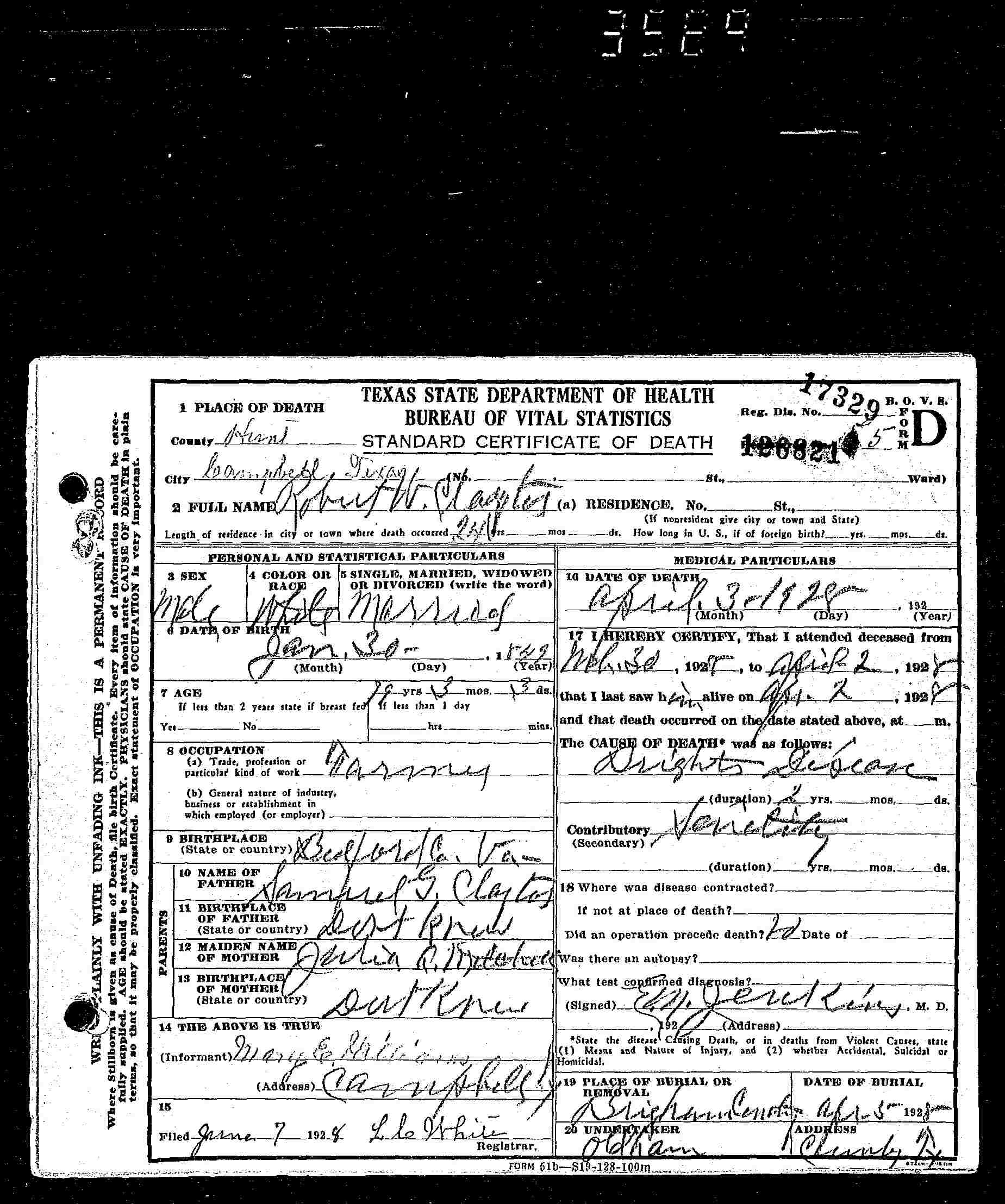 Residences1849 - Bedford, Virginia | 1850 - Bedford, Virginia 1860 - Bedford, Virginia 1880 - Hilliardsville, Henry, Alabama | 1900 - Shorterville, Henry, Alabama | 1910 - Hunt, Texas 1920 - Campbell, Hunt, Texas 1928 - Campbell, Texas |