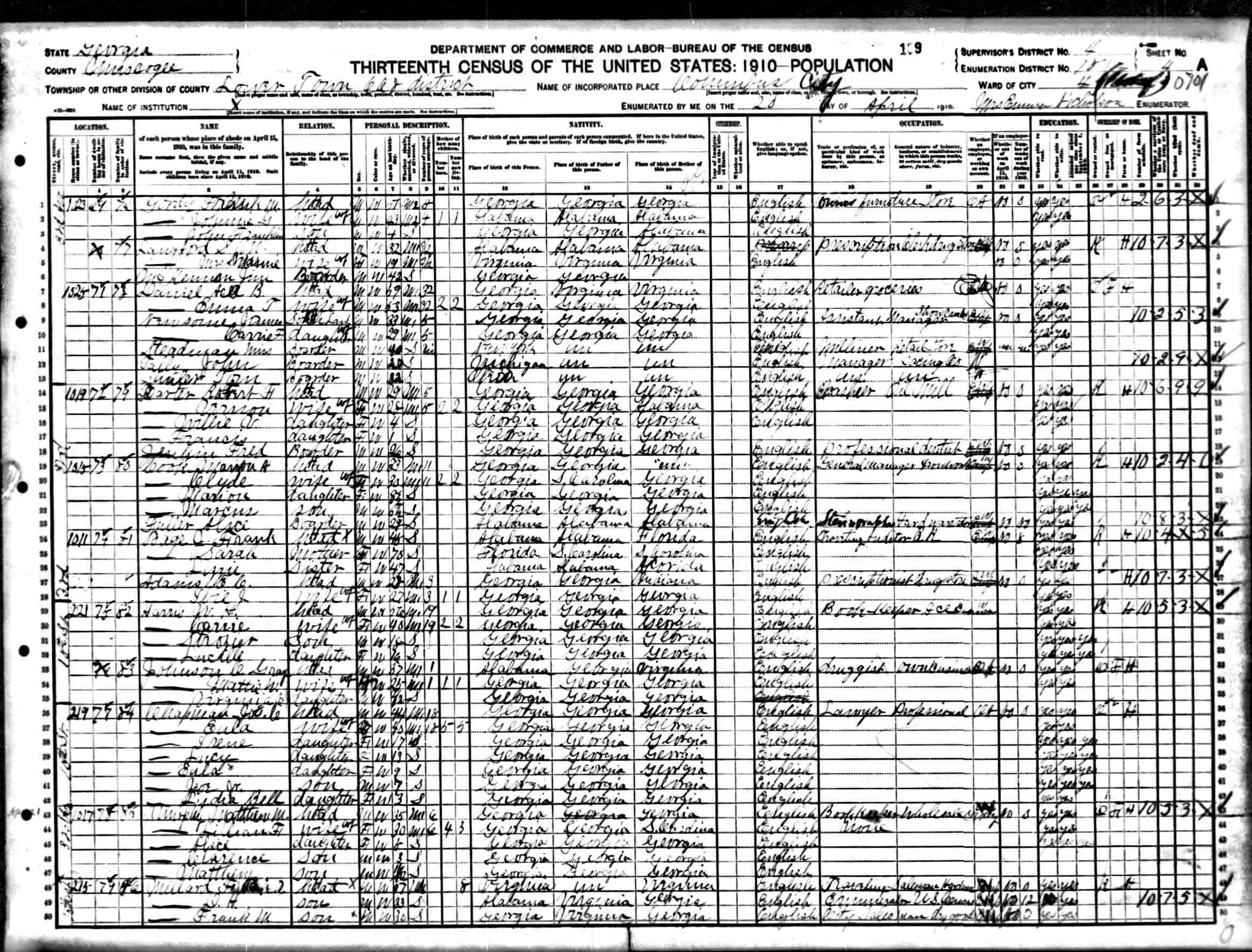 Residences1873 - Alabama | 1880 - Columbus, Muscogee, Georgia 1910 - Columbus, Muscogee, Georgia 1920 - Bozemans, Muscogee, Georgia 1930 - Columbus, Muscogee, Georgia |