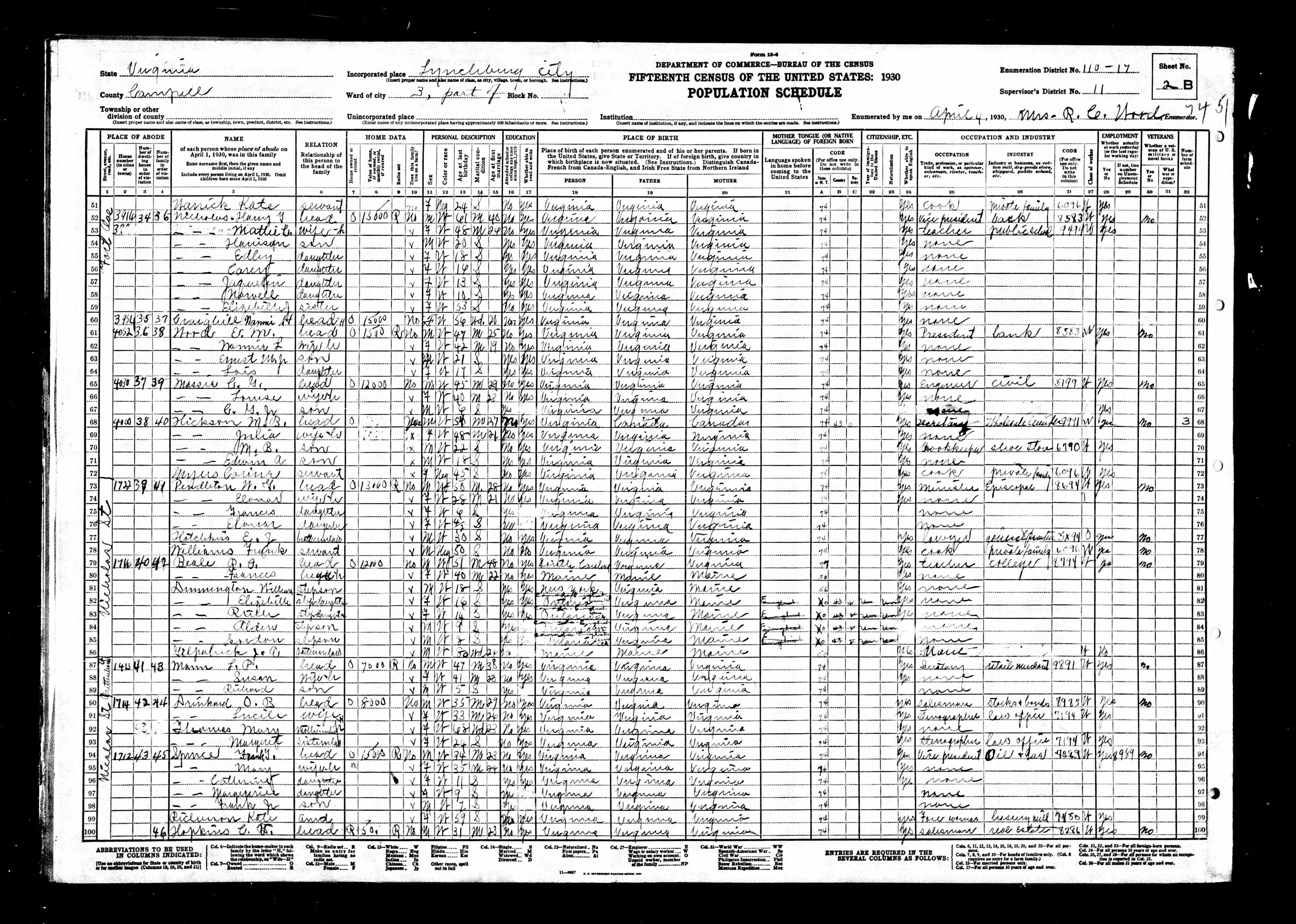 Residences1901 - Virginia | 1910 - Centre, Fauquier, Virginia 1920 - Center, Fauquier, Virginia 1930 - Lynchburg, Lynchburg, Virginia 1940 - Tappahannock, Essex, Virginia 1987 - Warrenton, Fauquier, Virginia, USA |