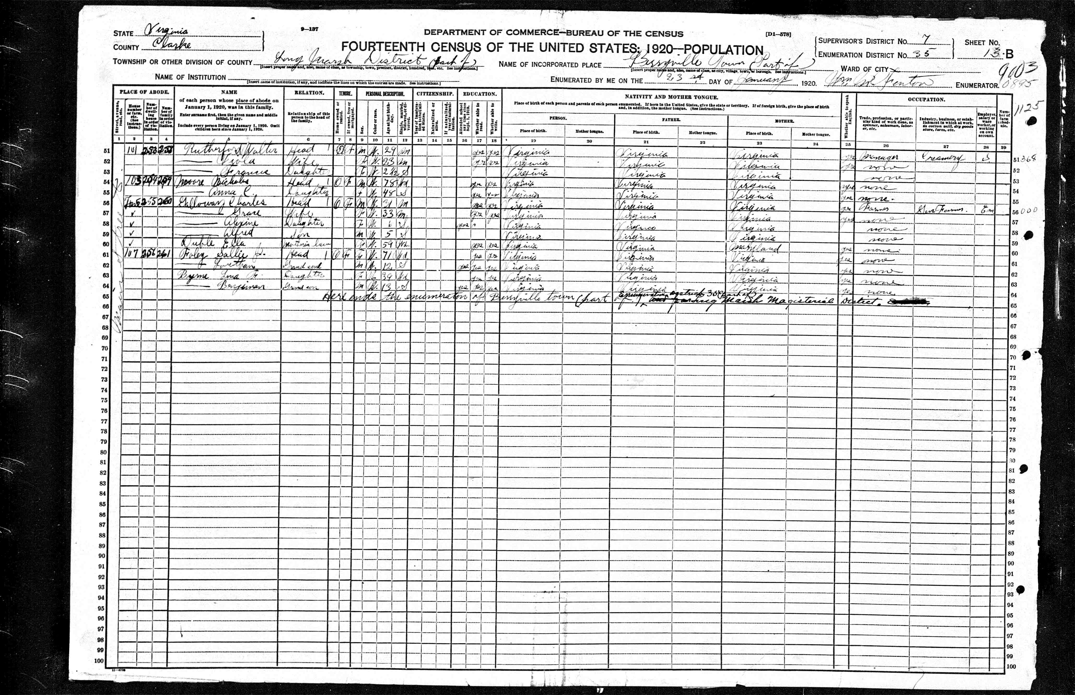 Residences1848 - Lovettsville, Virginia | 1860 - Loudoun, Virginia 1880 - Long Marsh, Clarke, Virginia 1900 - Russells, Clarke, Virginia 1910 - Long Marsh, Clarke, Virginia 1920 - Long Marsh, Clarke, Virginia 1930 - Winchester, Virginia |