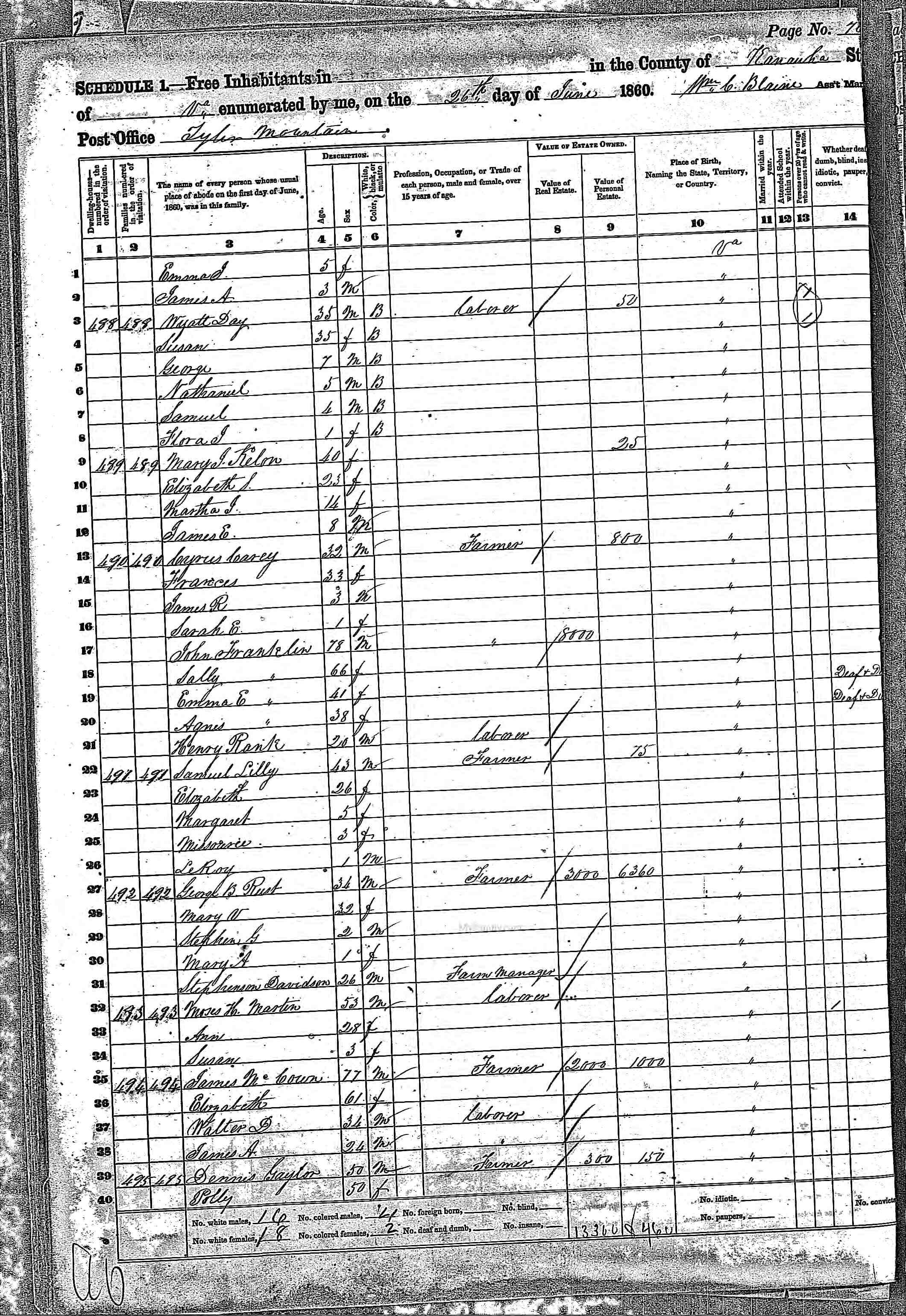 Residences1826 - Kanawha, Virginia | 1850 - Putnam, Virginia 1860 - Kanawha, Virginia 1870 - Union, Kanawha, West Virginia 1880 - Kanawha, West Virginia 1881 - Kanawha, West Virginia |