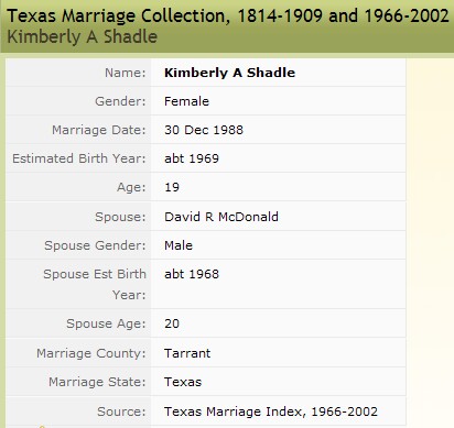 Kimberly Ann Shadle - David Roger McDonald