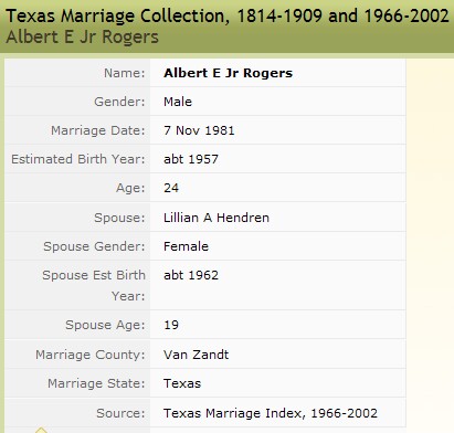 Albert Eugene Rogers Jr - Lillian Aline Hendren