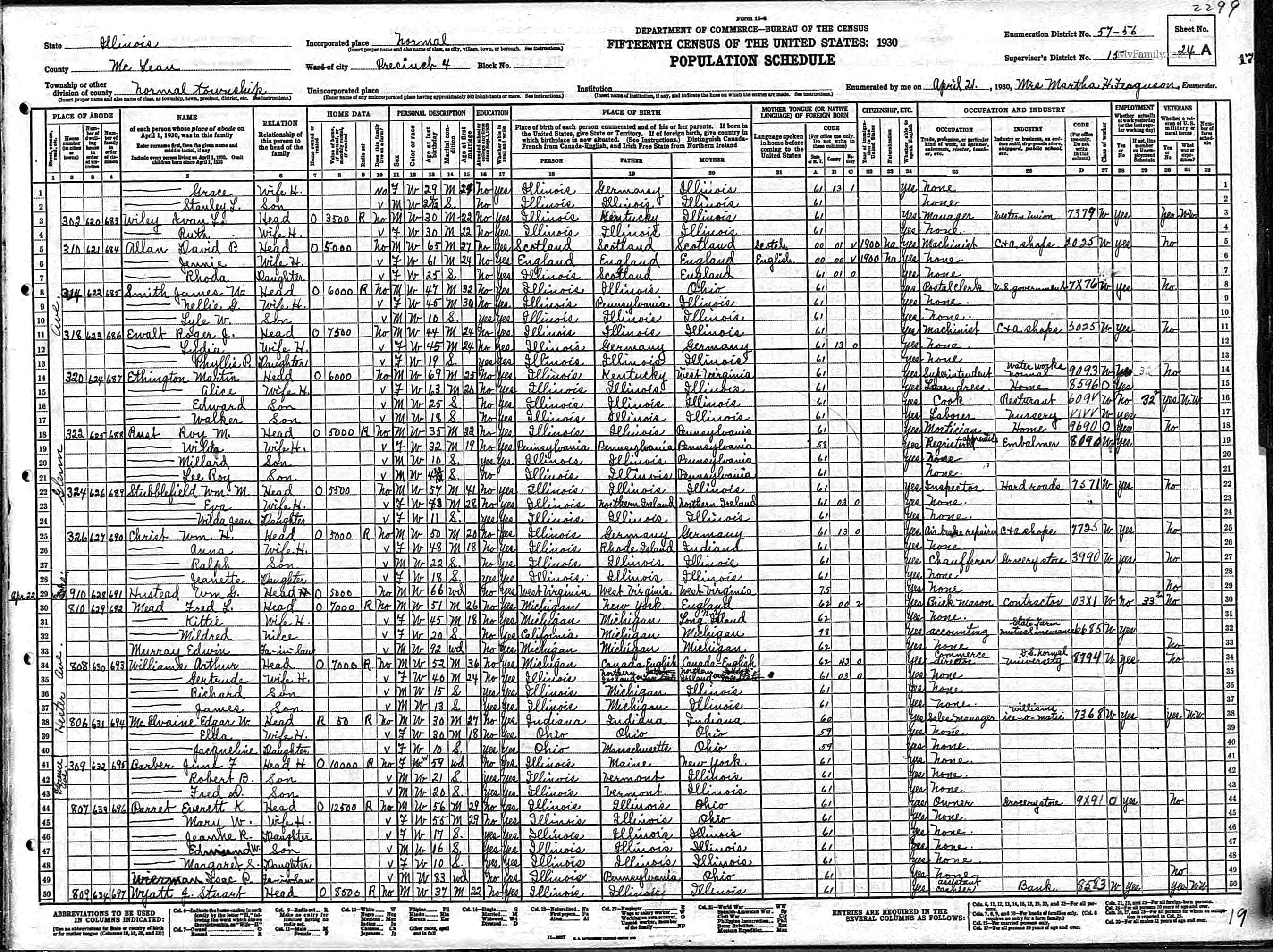 Residences1918 - Altanta, Illinois | 1920 - La Salle, La Salle, Illinois 1930 - Normal, Mclean, Illinois 2006 - Secor, Woodford, Illinois |
