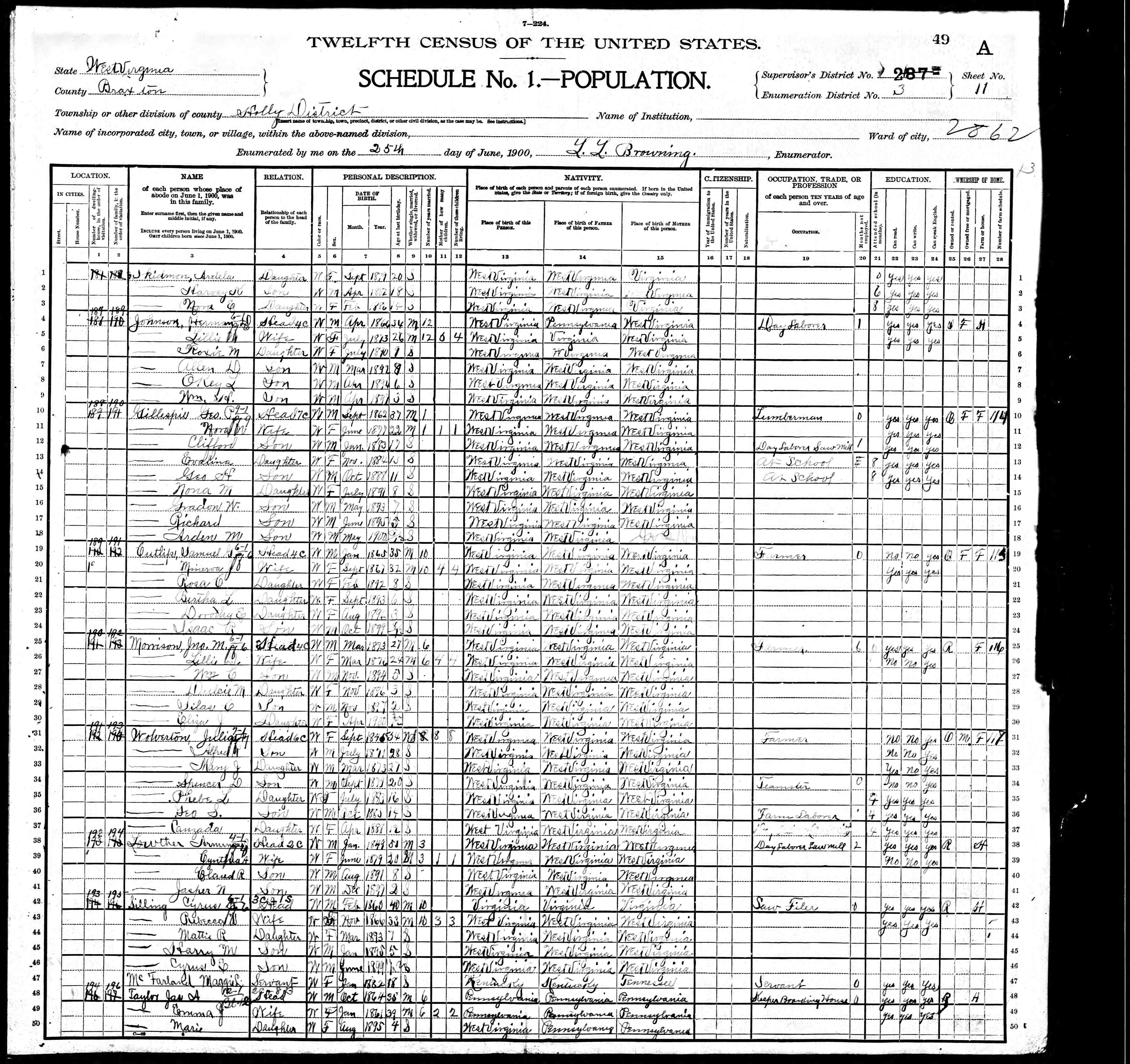 Residences1866 - Kanawha County, Virginia | 1870 - Union, Kanawha, West Virginia 1880 - Union, Kanawha, West Virginia 1900 - Holly, Braxton, West Virginia 1910 - Charleston, Kanawha, West Virginia 1920 - Charleston, Kanawha, West Virginia 1930 - Charleston, Kanawha, West Virginia |