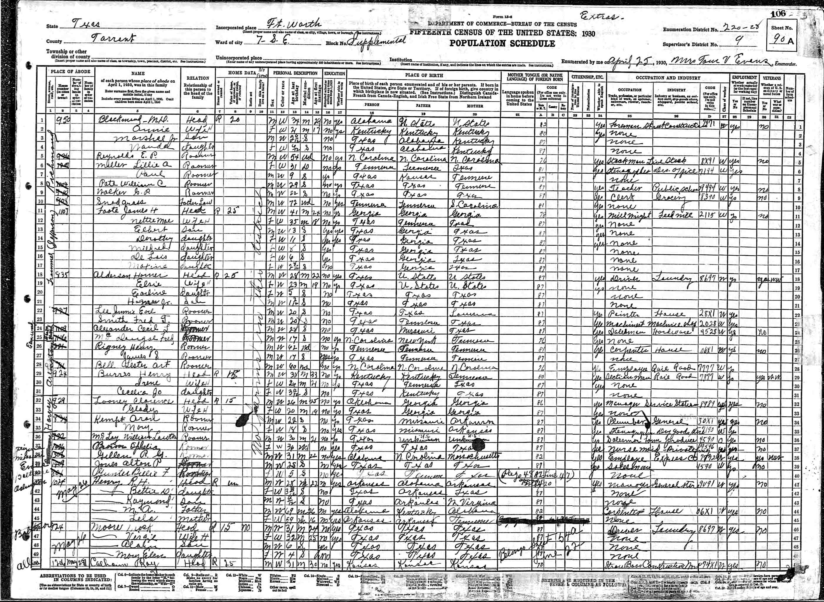 Residences1916 - Fort Worth, Texas | 1920 - Dallas, Dallas, Texas 1930 - Fort Worth, Tarrant, Texas 1991 - Fairfield, California |