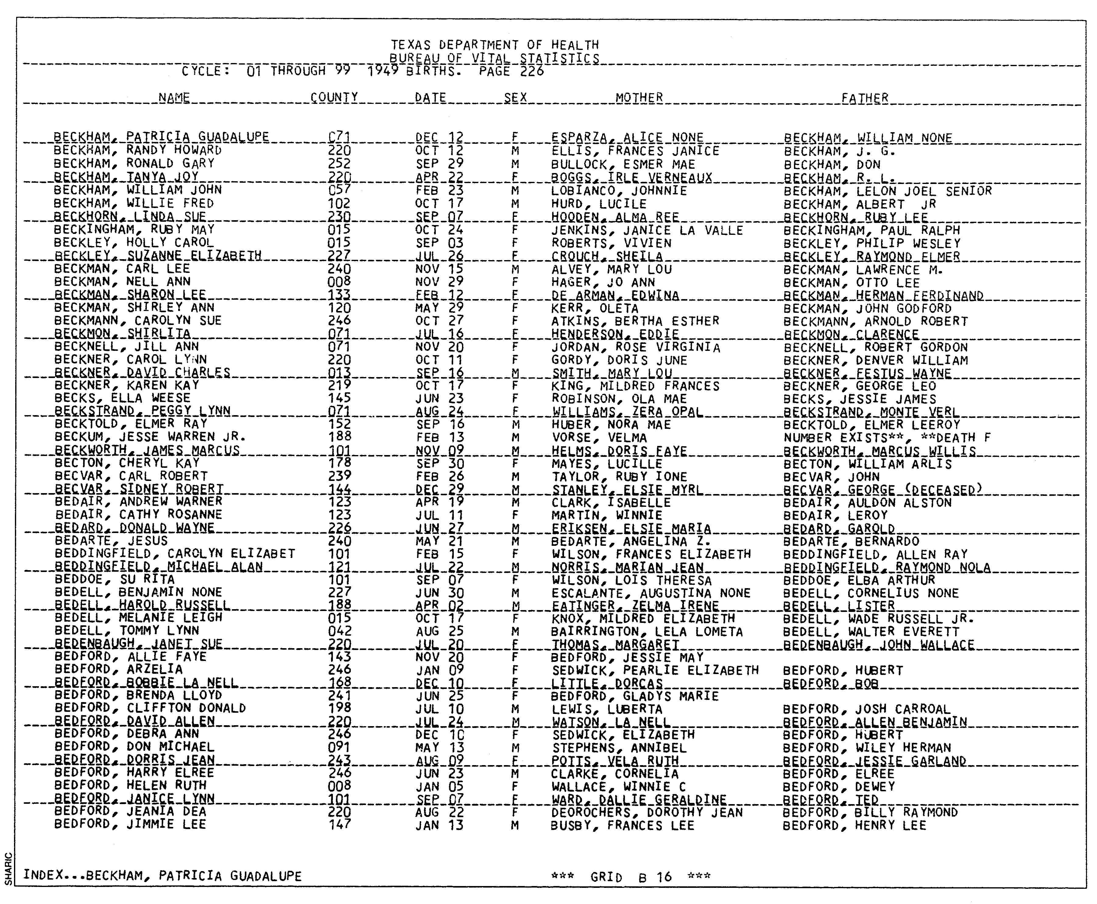 Stacey Ann Beckum - 16 Mar 1972 - Christy Sharrise Beckum - 19 Jun 1975 - Stephen Todd Beckum - 7 Jan 1981 -