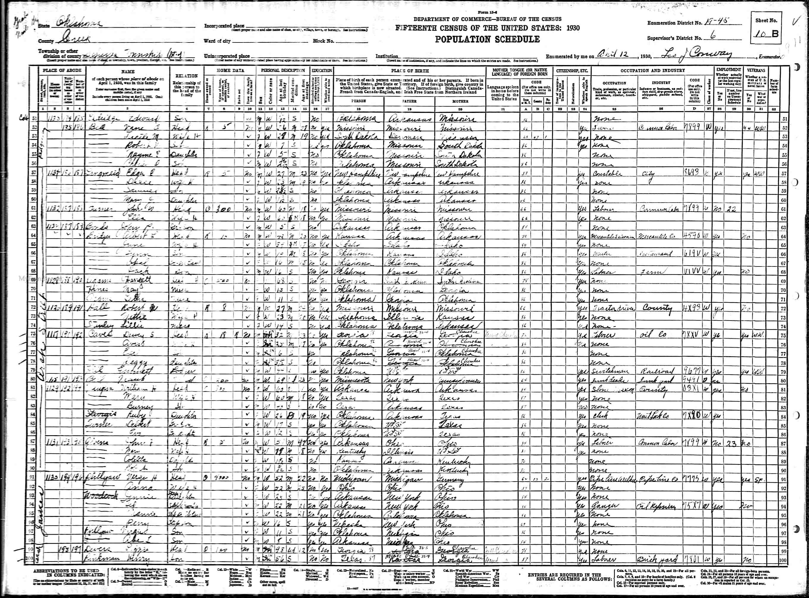 Residences1886 - Fort Scott, Bourbon, Kansas | 1910 - Sapulpa, Creek, Oklahoma 1930 - Sapulpa, Creek, Oklahoma |