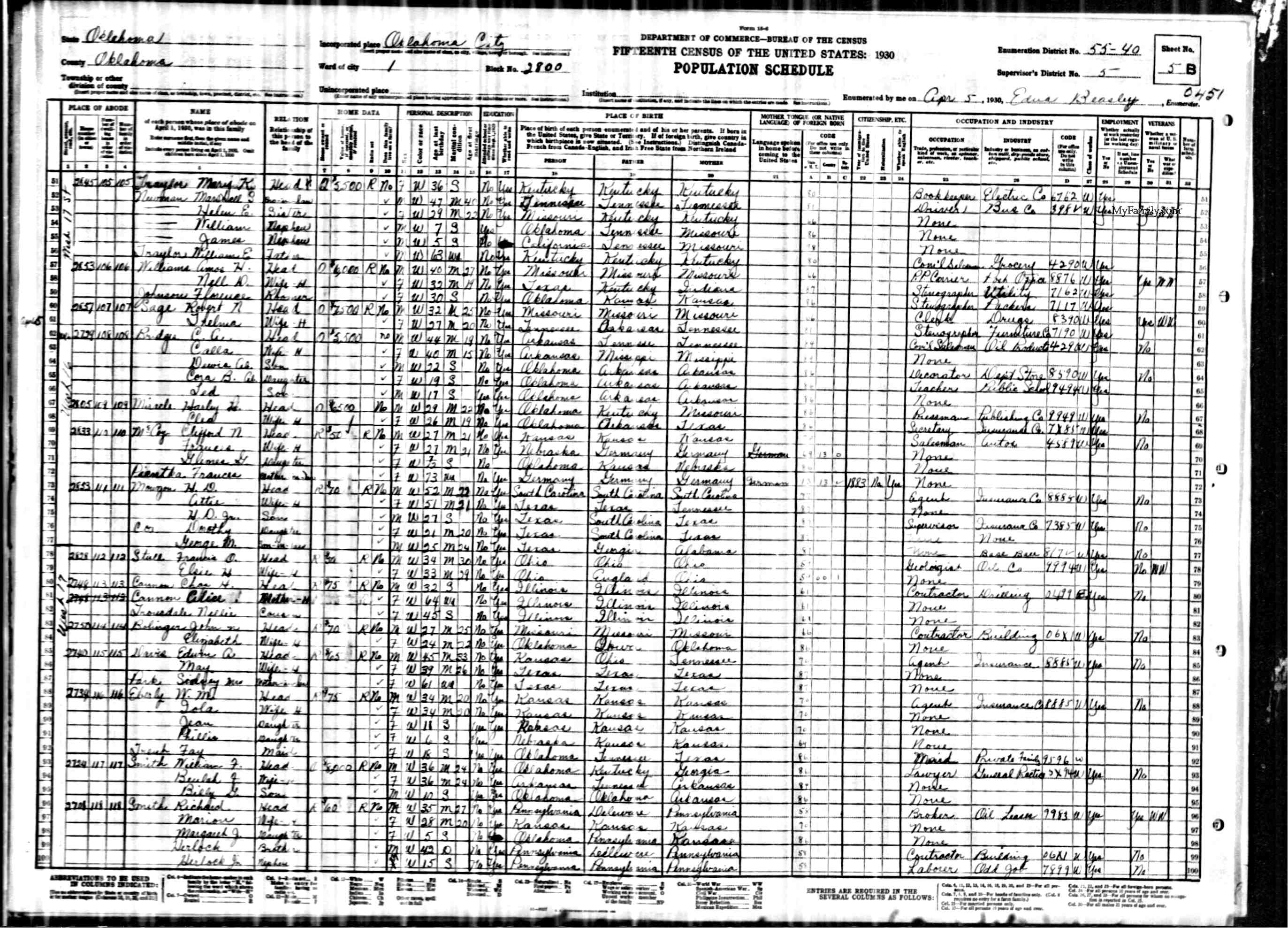 Residences1885 - Arkansas | 1900 - White Oak, Sebastian, Arkansas 1910 - Meridian, Roger Mills, Oklahoma 1920 - Sayre, Beckham, Oklahoma 1930 - Oklahoma City, Oklahoma 1966 - Oklahoma City, Oklahoma, Oklahoma |