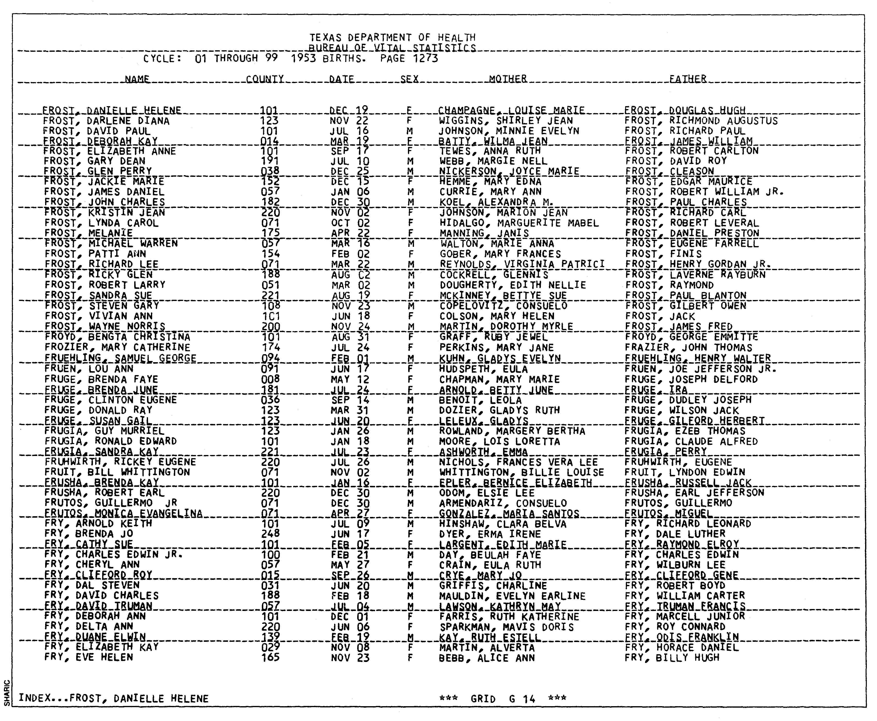 Paige Cooper Fruit - 8 Sep 1989 - Travis Whittington Fruit - 1 Nov 1990 -