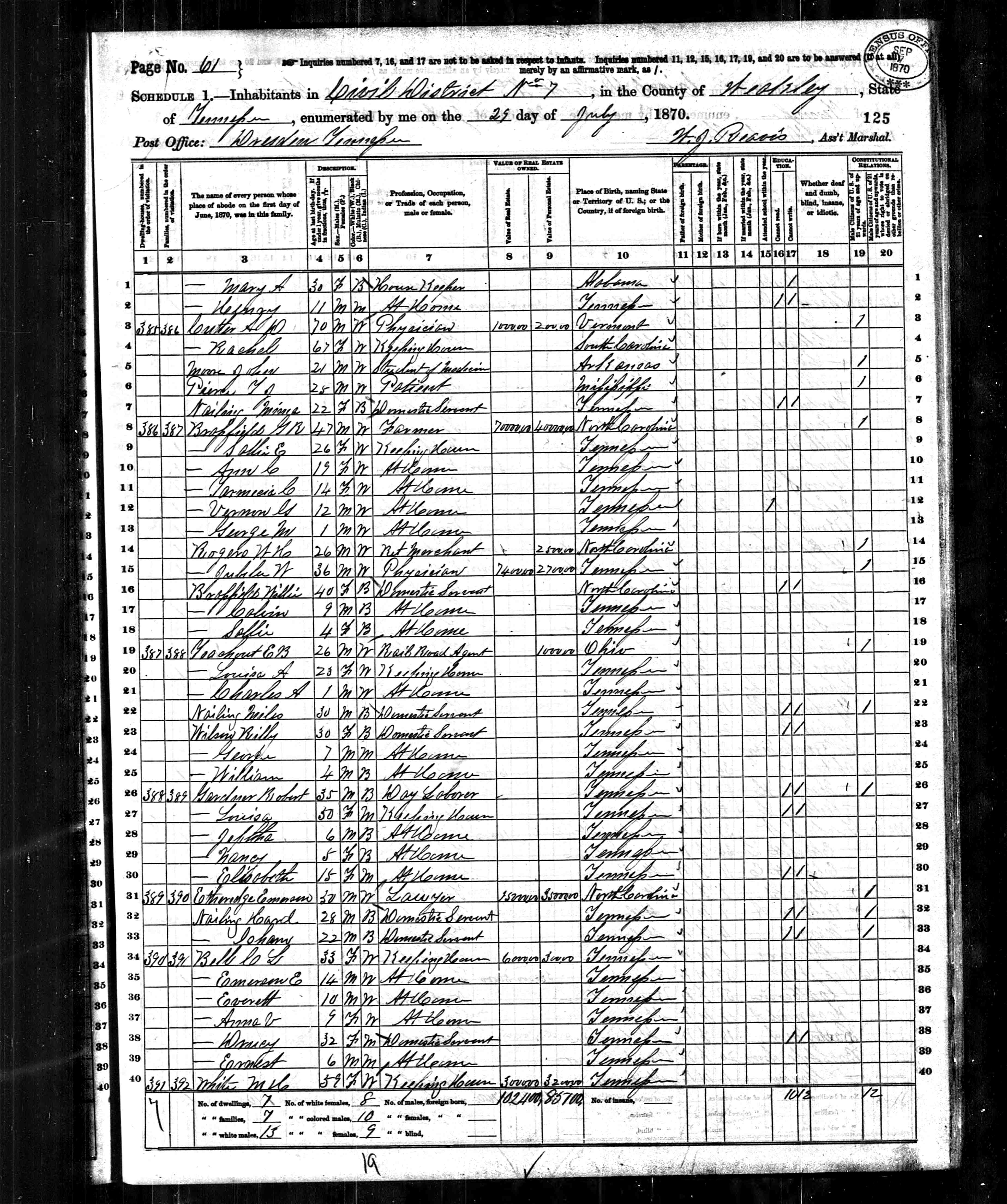 1870 Census Records1870 Census