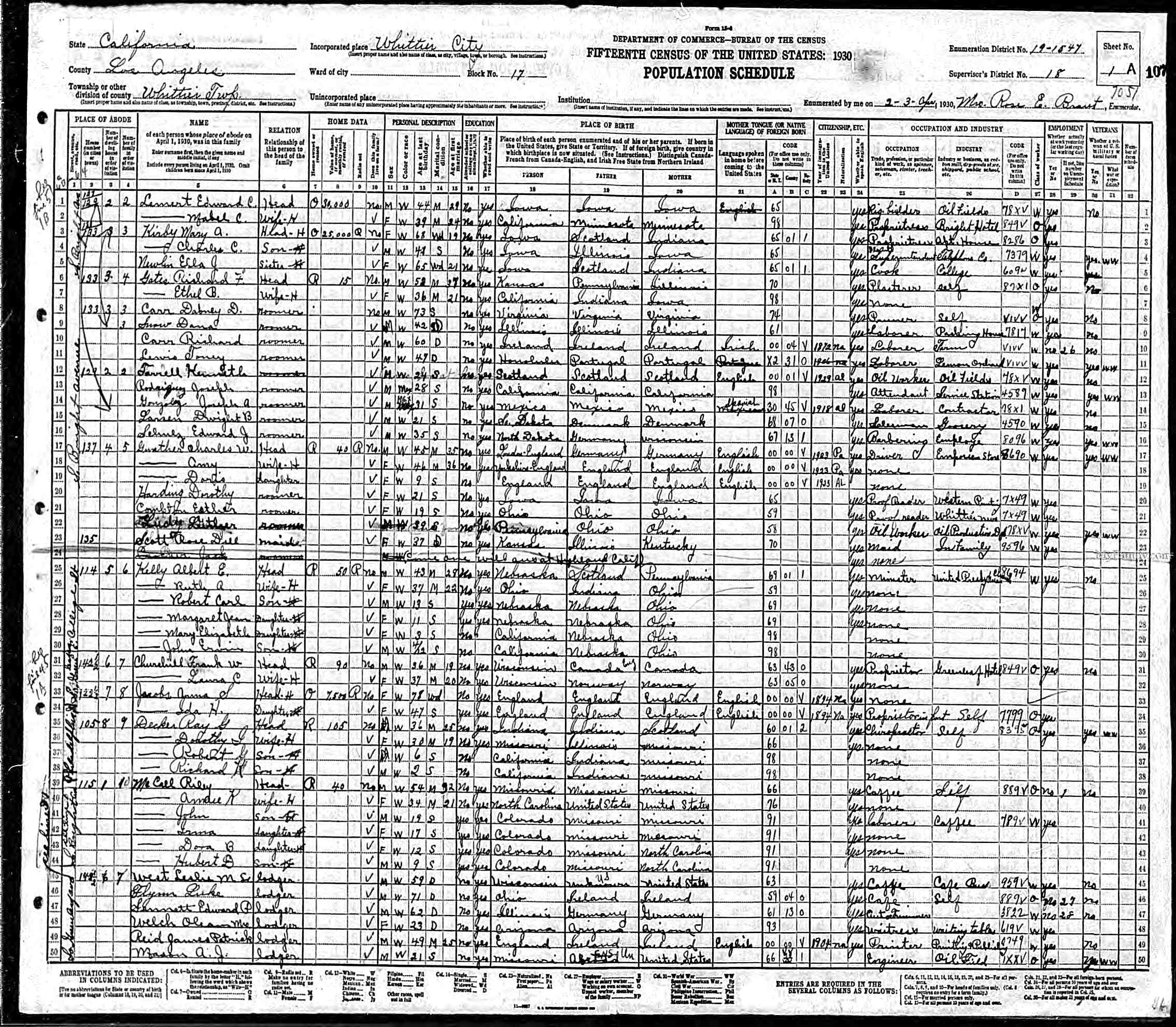 1930 - Whittier, Los Angeles, California