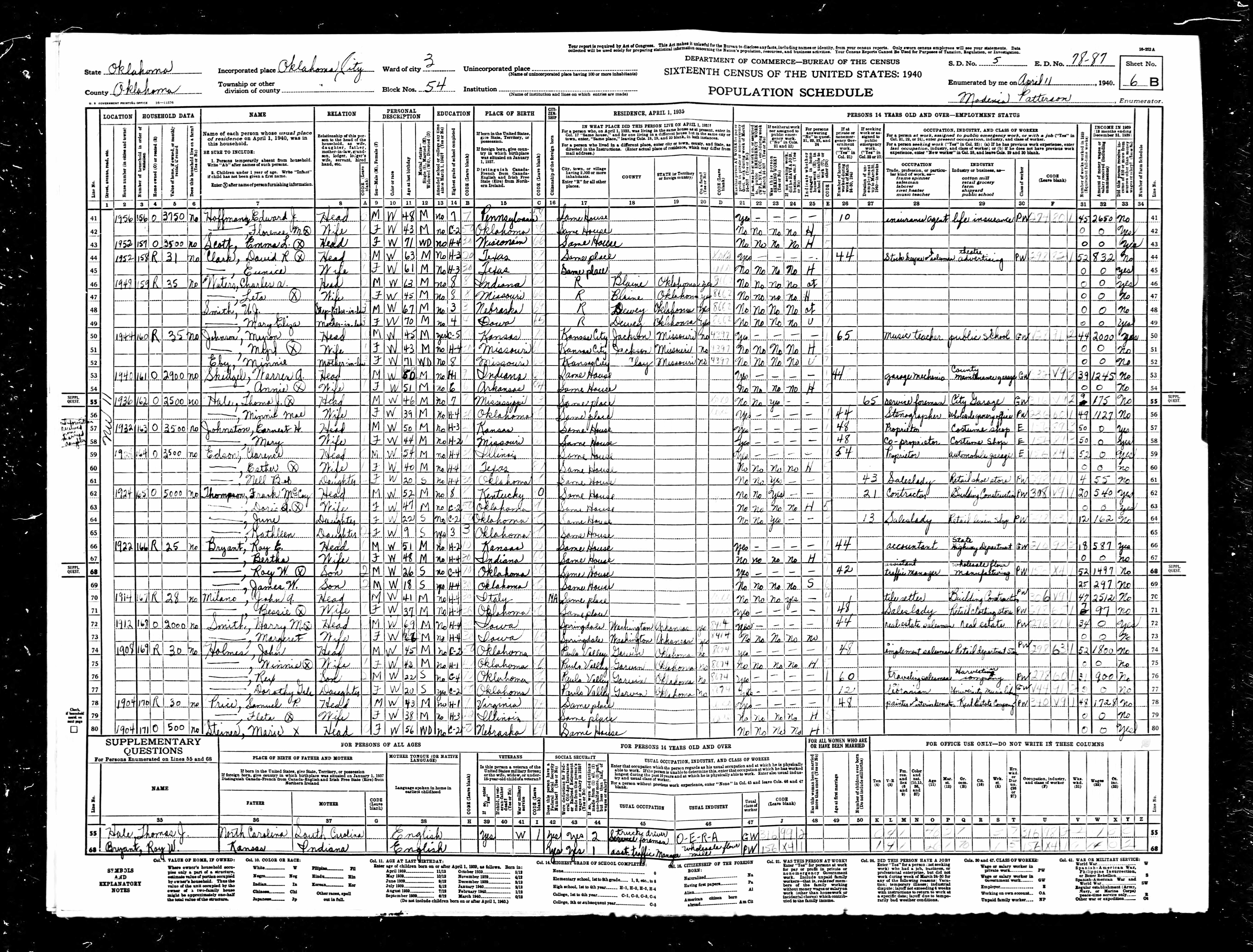 Residences1887 - Princeton, Kentucky | 1900 - Alcorn, Mississippi 1910 - Coalgate, Coal, Oklahoma 1920 - Coalgate, Coal, Oklahoma 1930 - Oklahoma City, Oklahoma, Oklahoma 1940 - Oklahoma City, Oklahoma, Oklahoma 1946 - Oklahoma City, Oklahoma, Oklahoma |