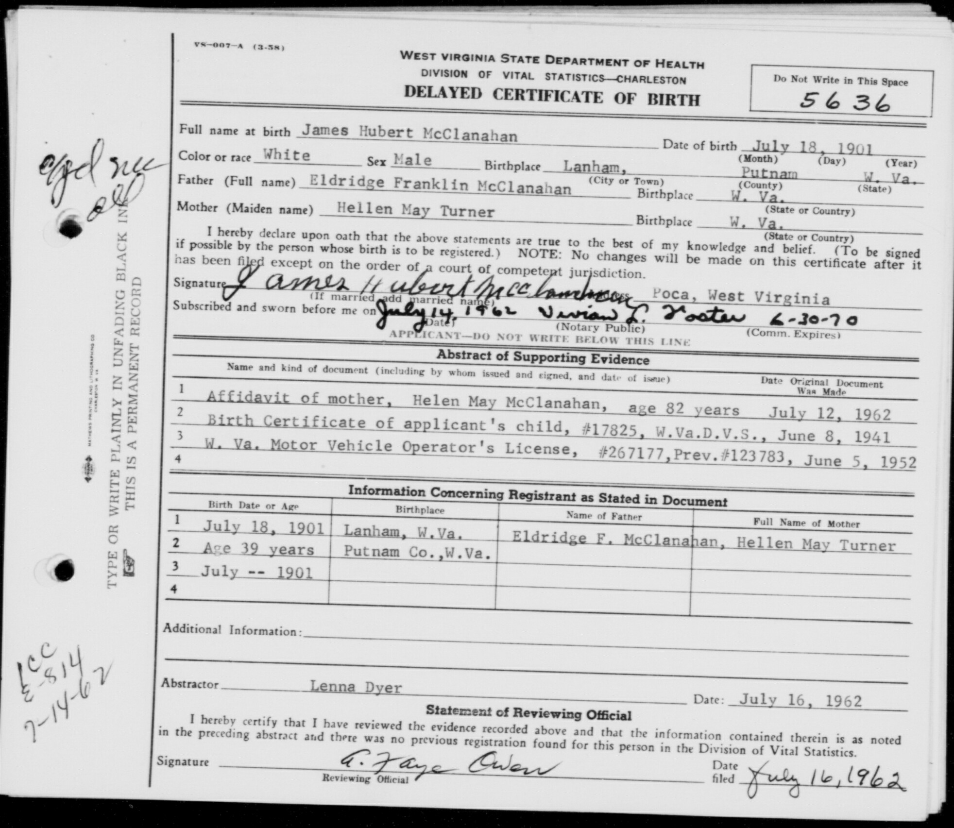 Gilbert Delano McClanahan - 1942 - Frank Wilks McClanahan - 1936 -