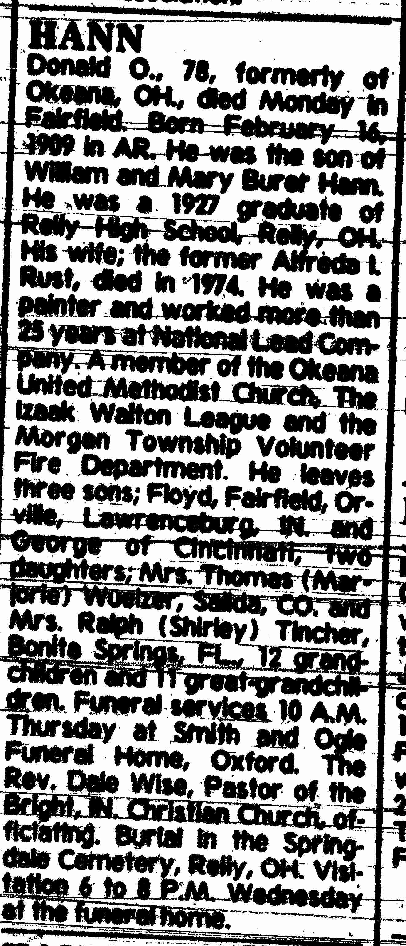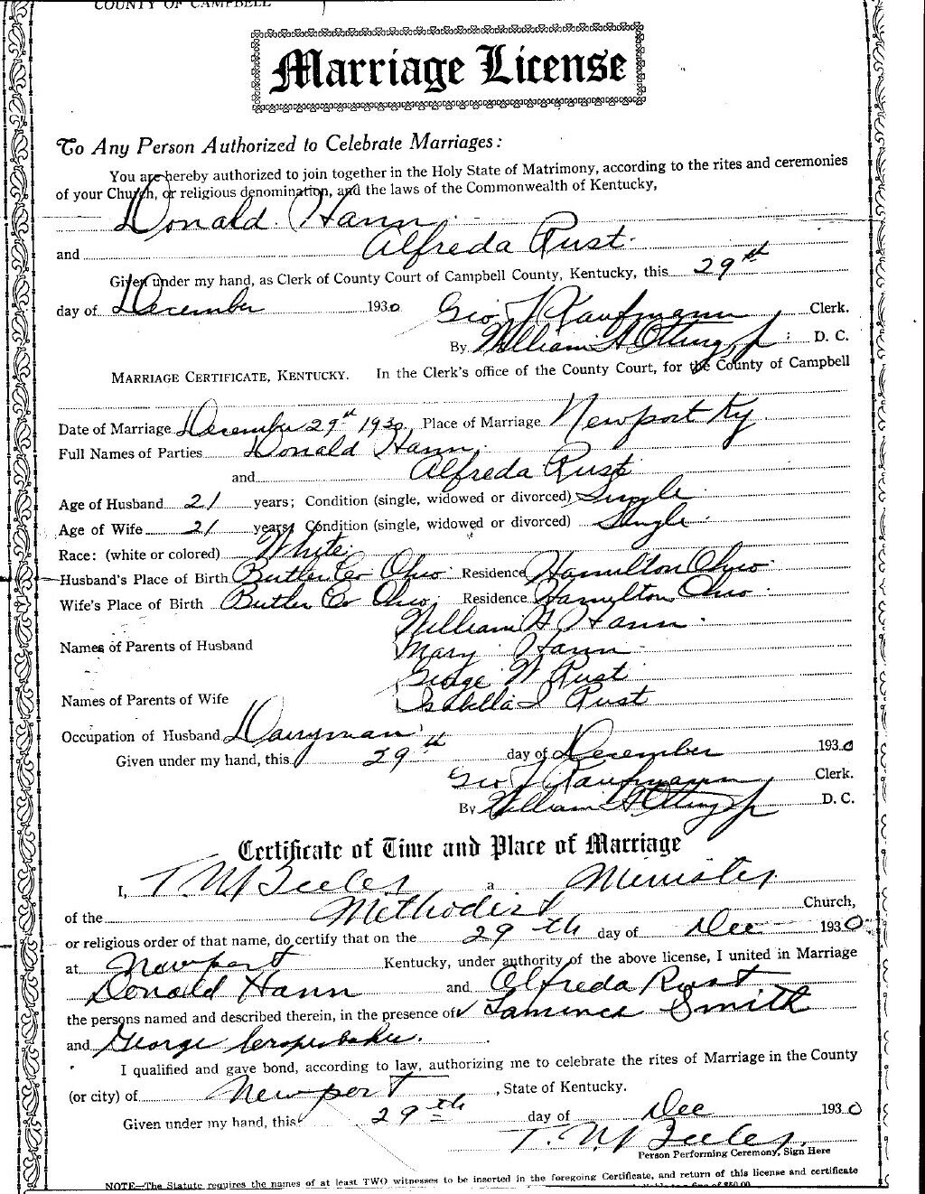 Donald Oroy Hann -  Alfreda Isabella Rust
