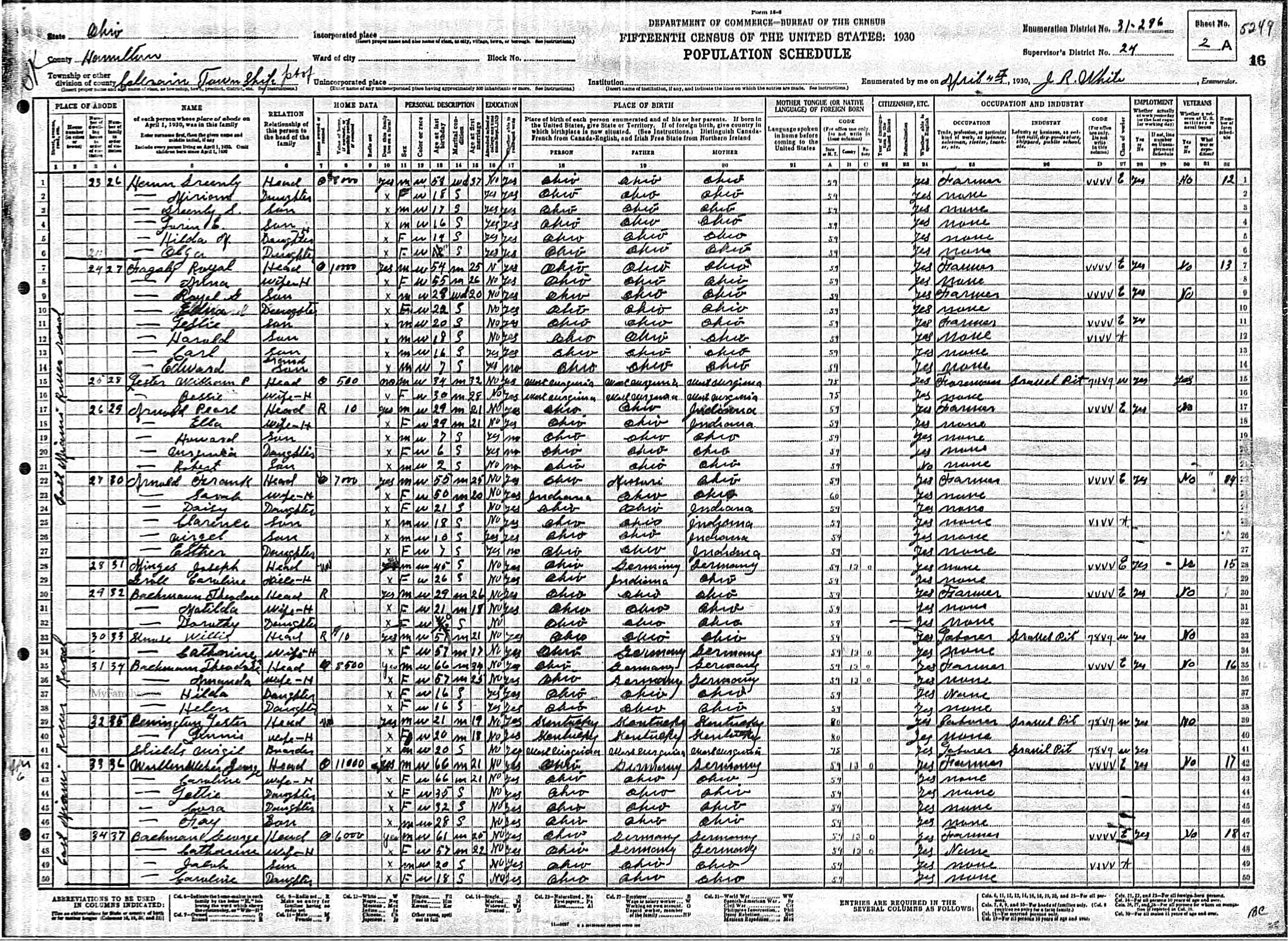Residences1914 - New Haven, Ohio | 1920 - Cincinnati, Hamilton, Ohio 1930 - Colerain, Hamilton, Ohio 1940 - Colerain, Hamilton, Ohio 1950 - Crosby, Hamilton, Ohio 1990 - Ohio |