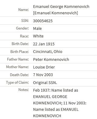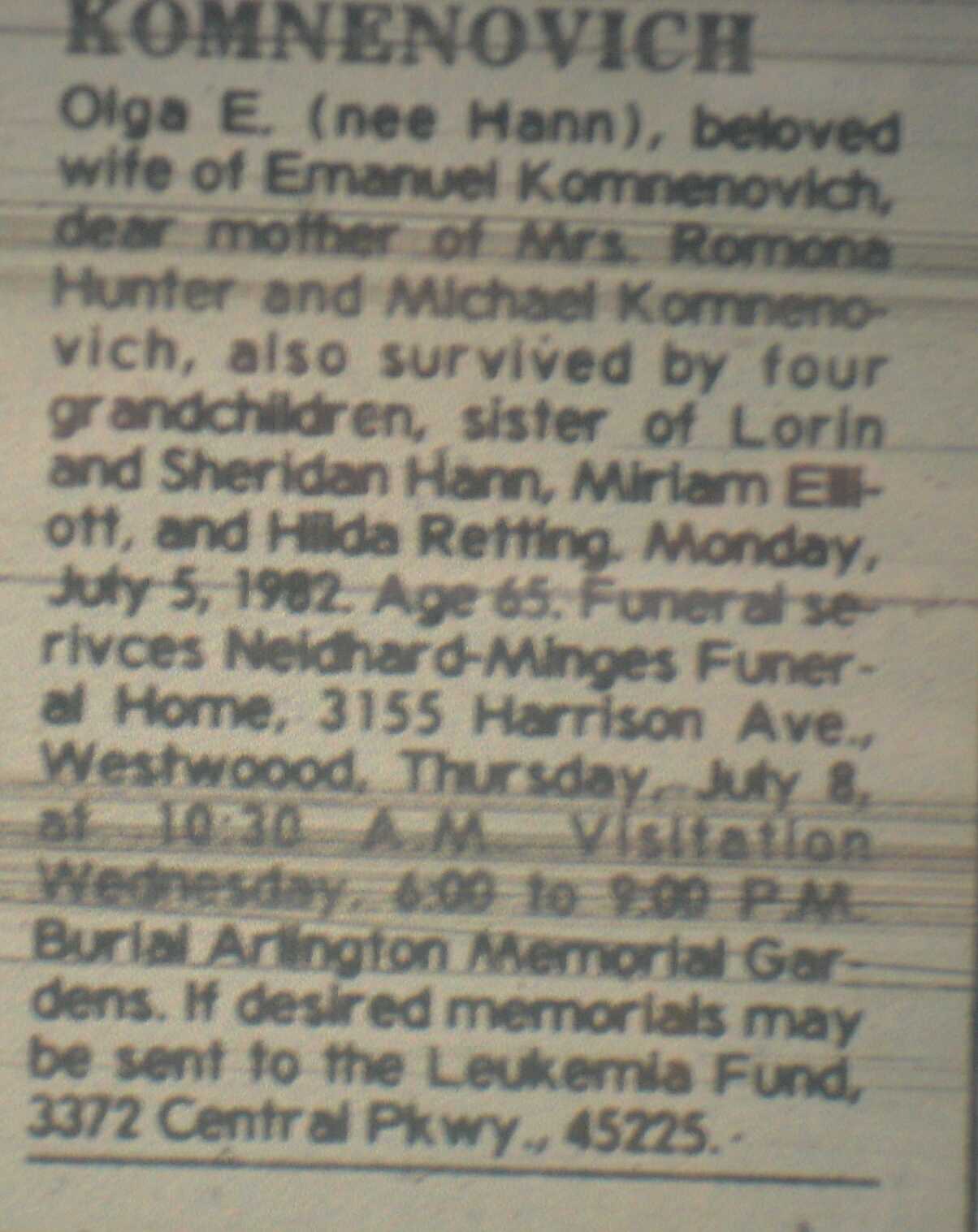 Olga Elizabeth Hann - Emanuel George Komnenovich