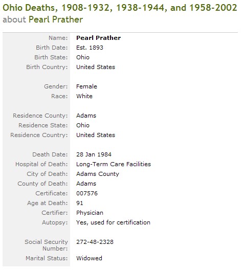 Residences1888 - West Union, Ohio | 1900 - Tiffin, Adams, Ohio 1910 - Tiffin, Adams, Ohio 1920 - Tiffin, Adams, Ohio 1930 - West Union, Adams, Ohio 1973 - West Union, Adams, Ohio |