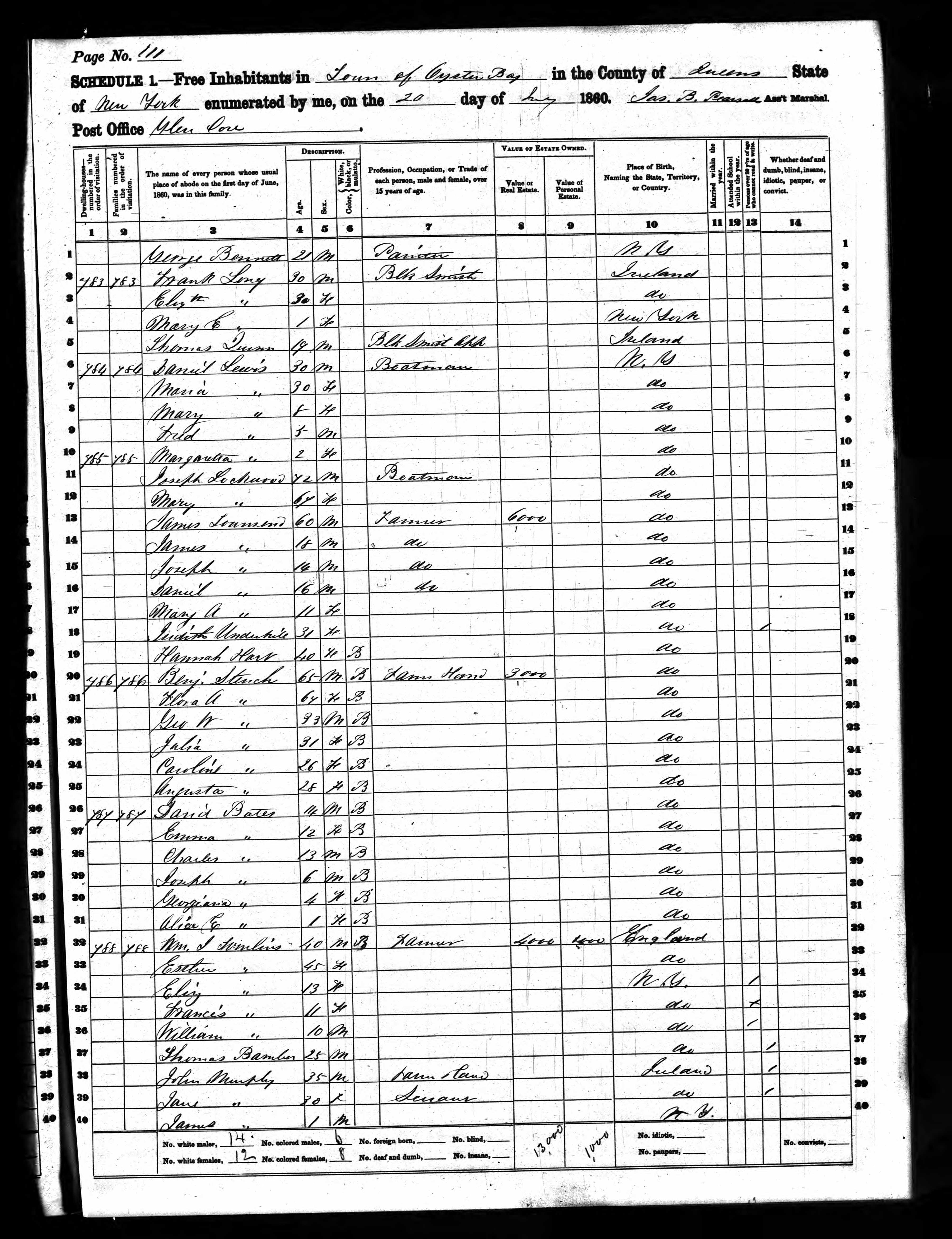 Residences1849 - New York | 1850 - Oyster Bay, Queens, New York 1860 - Oyster Bay, Queens, New York 1880 - Queens, Queens, New York 1900 - Oyster Bay, Nassau, New York 1910 - Oyster Bay, Nassau, New York 1920 - Oyster Bay, Nassau, New York |